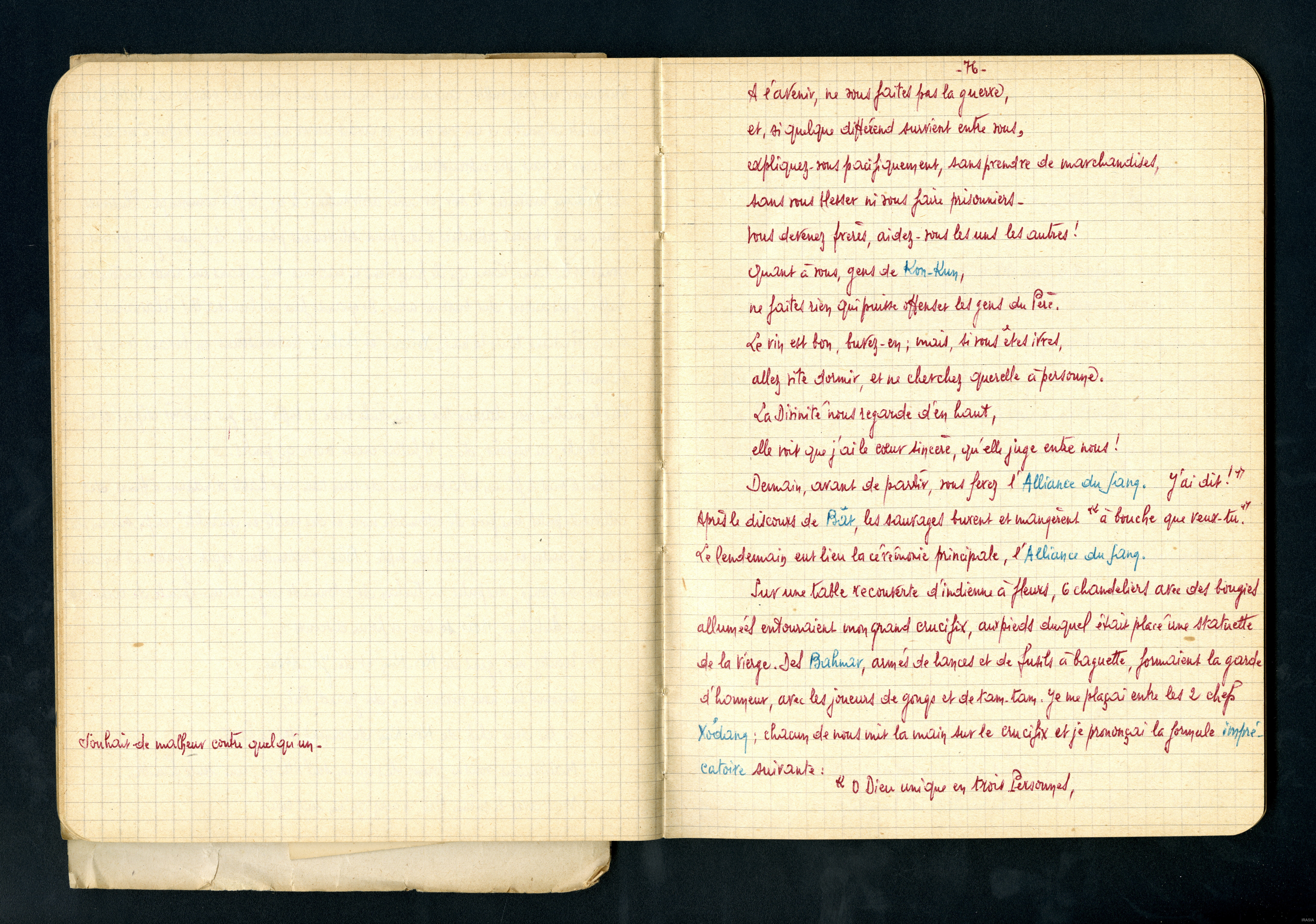 Cahier : moeurs et superstitions des Sauvages Bahnars