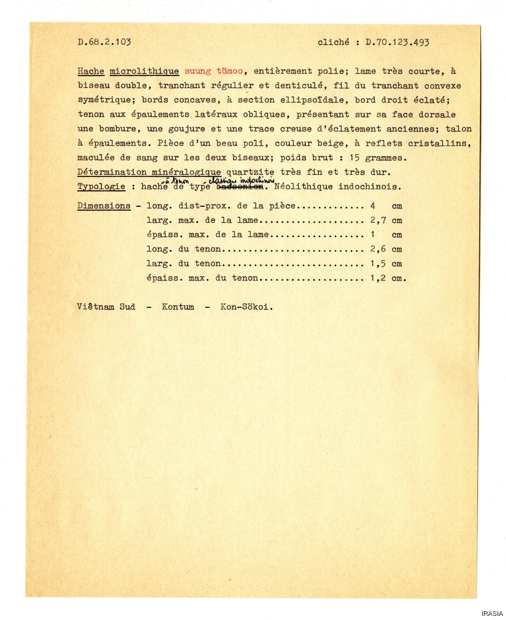 Quote this document Léger, Daniel [accessed: 2026/2/3]. "Outils" (Object Id: 173597). In Outils. ODSAS: https://www.odsas.net/object/173597.