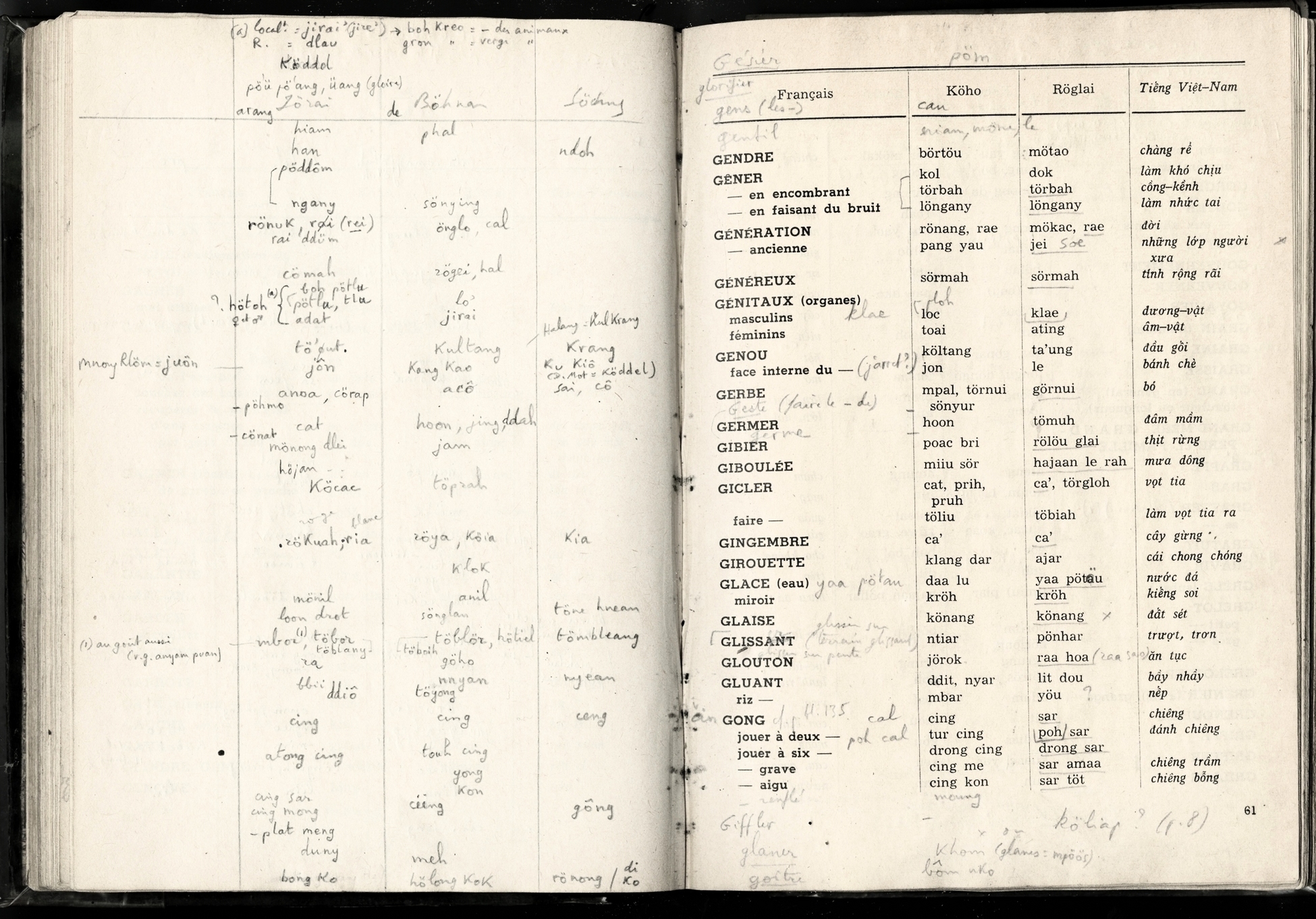 Lexique Polyglotte Viêtnamien, Köho, Röglai, Français