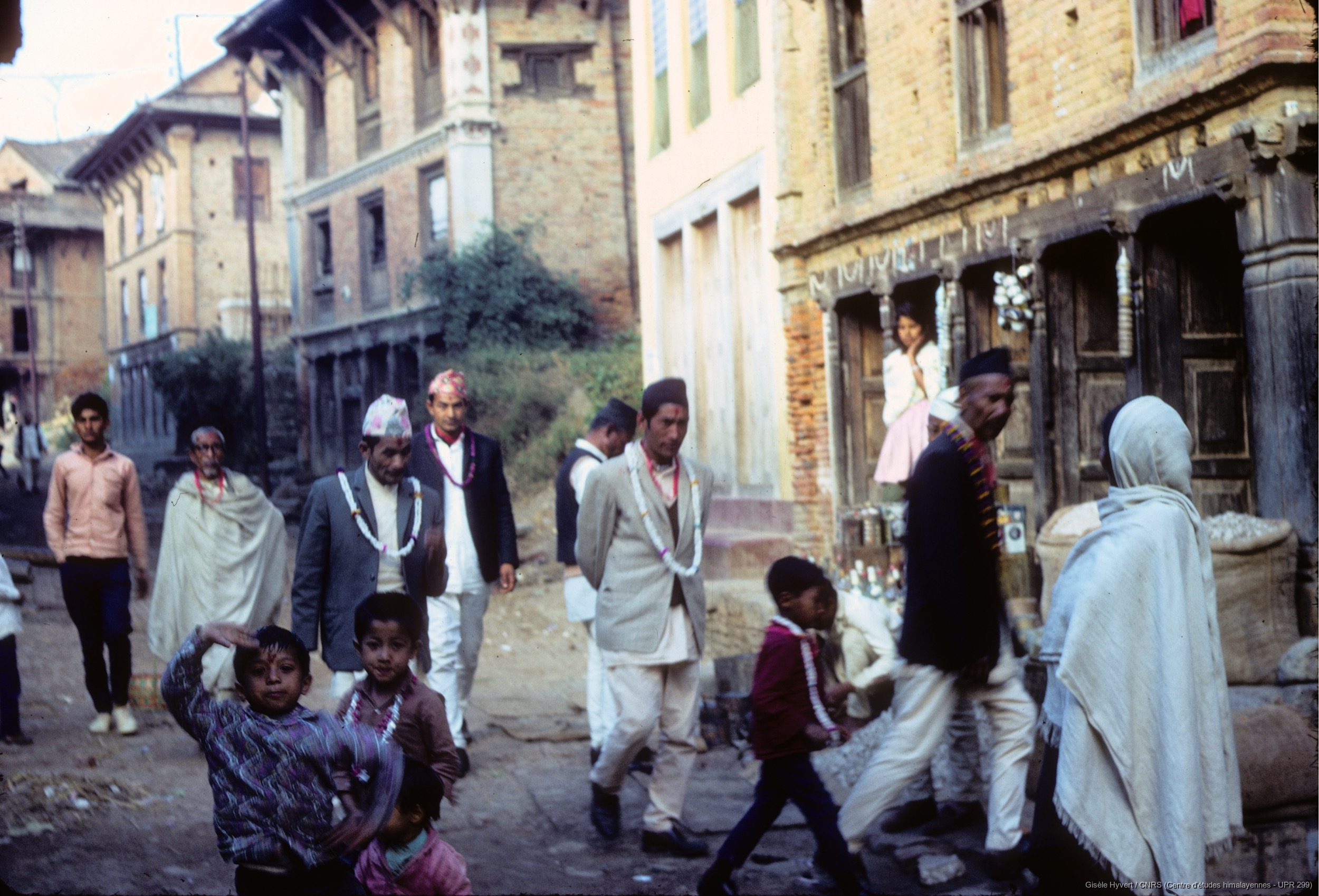 Quote this document Hyvert, Gisèle 1971 (circa) [accessed: 2026/2/5]. "Hommes Newar portant des guirlandes rituelles. " (Object Id: 188909). In Vallée de Kathmandu c.1971. ODSAS: https://www.odsas.net/object/188909.
