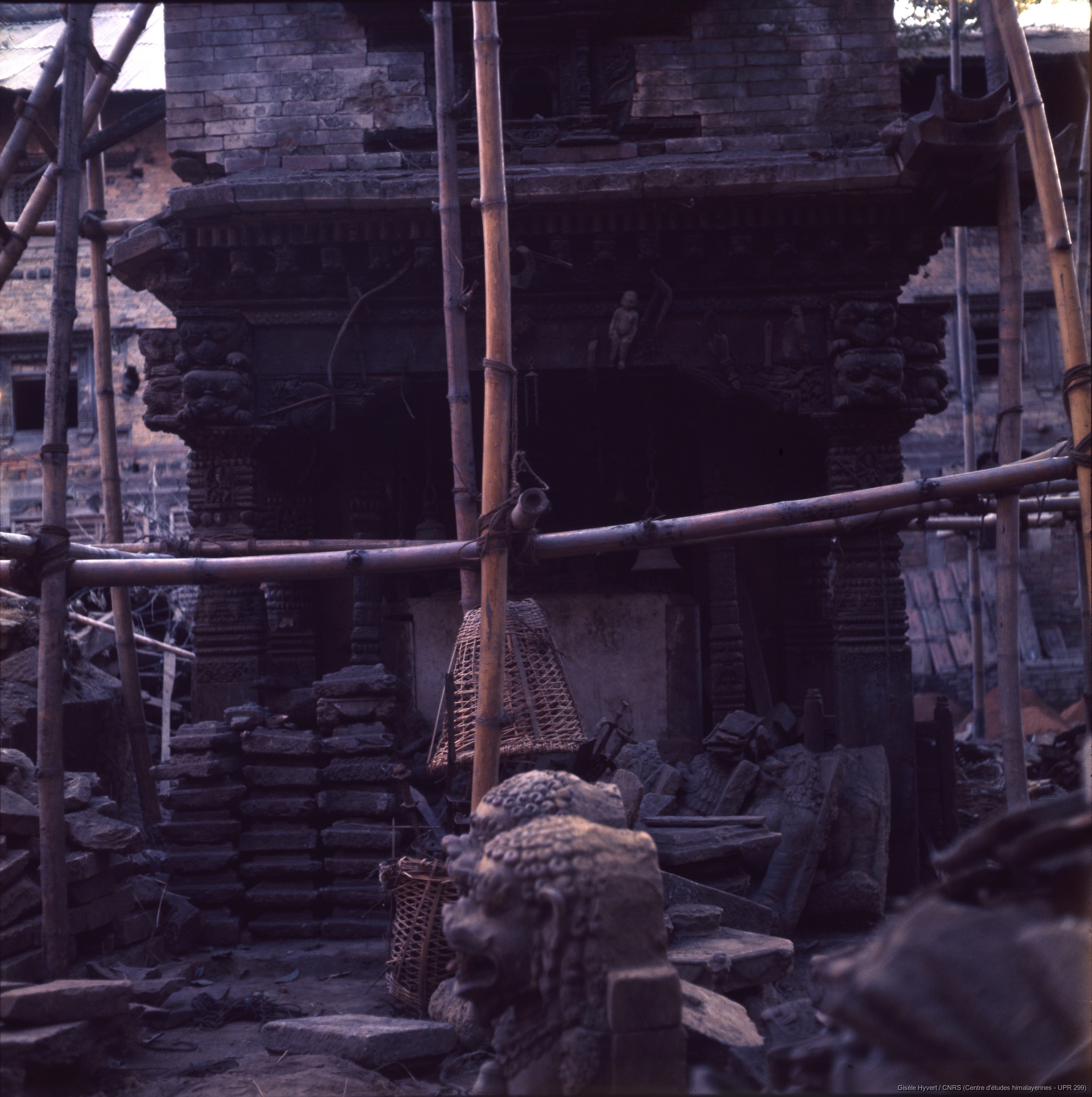 Vallée de Kathmandu c.1972-1975 / Palais royal de Hanuman Dhoka. Restauration du temple de Nasadyo (Nrityeshwar) dans la cour de Masan chok.  / Hyvert, Gisèle  / Kathmandu, Durbar square (Kathmandu district), Népal