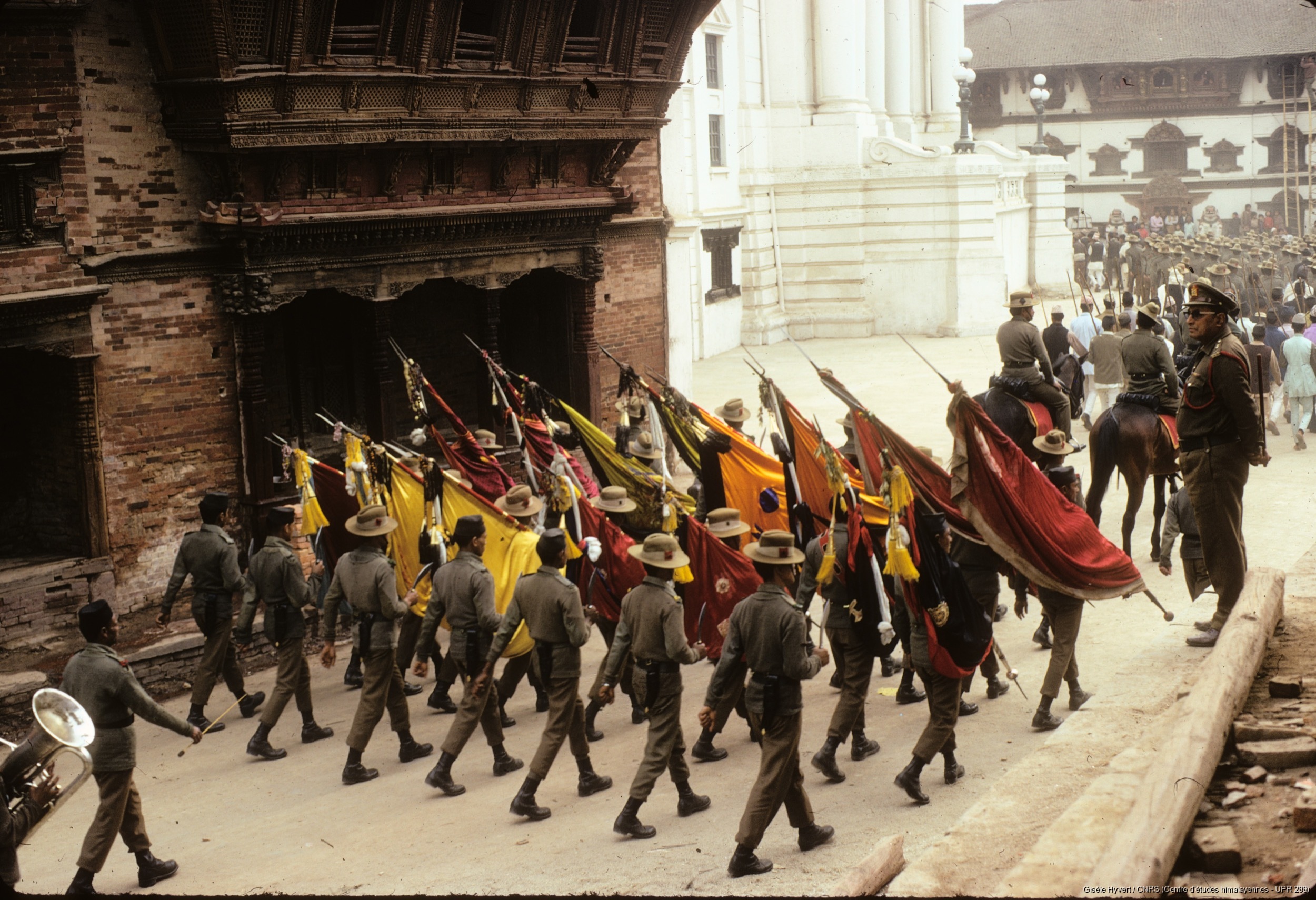 Hyvert, Gisèle 1975 (circa) [accessed: 2026/2/5]. "Défilé militaire débutant une fête à Hanuman Dhoka. " (Object Id: 189199). In