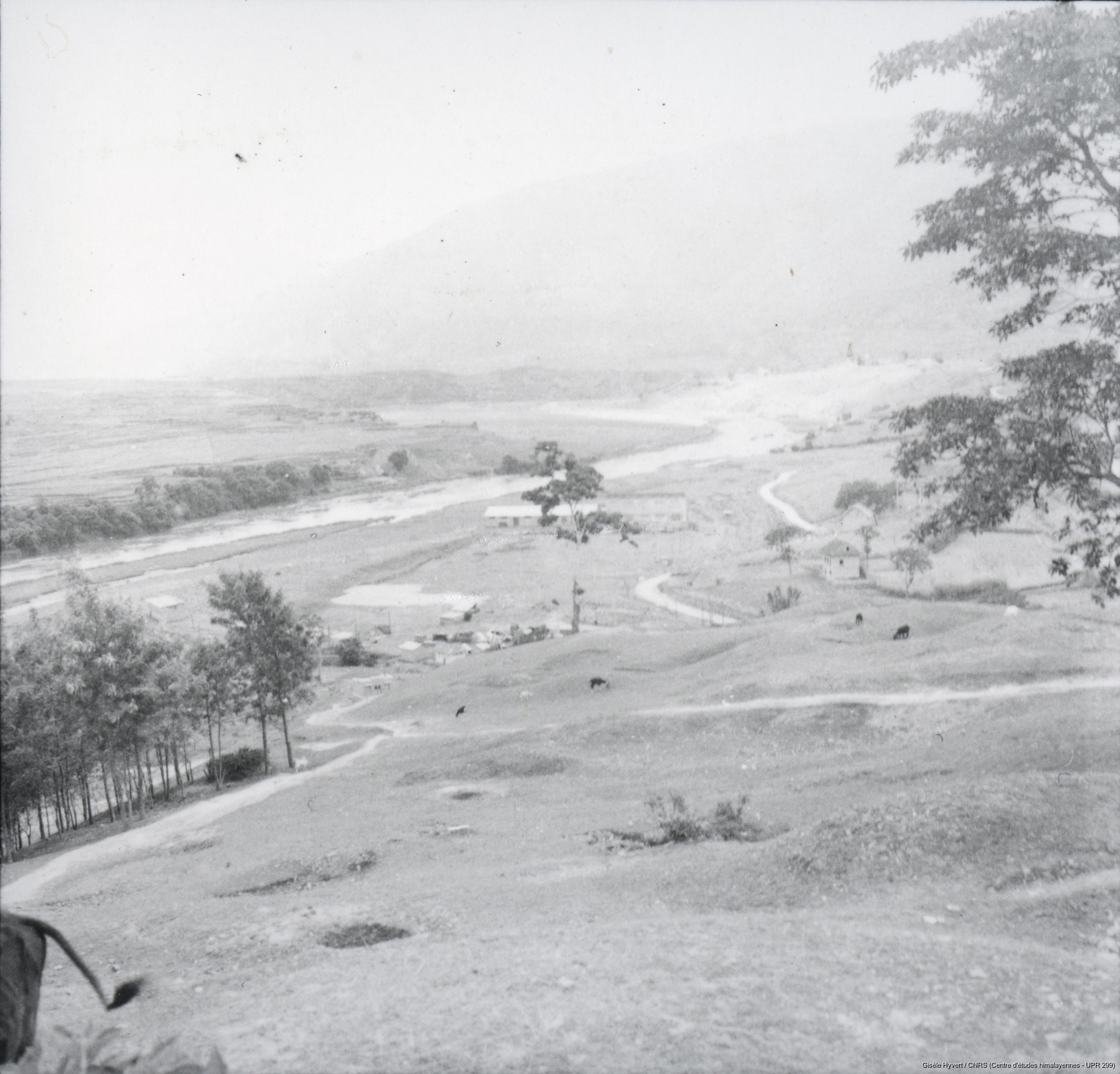 Quote this document Hyvert, Gisèle 1970 (circa) [accessed: 2026/2/5]. "Sur la route de Chobar avec vue sur la Bagmati. " (Object Id: 189320). In Vallée de Kathmandu non date c.1970-1975. ODSAS: https://www.odsas.net/object/189320.
