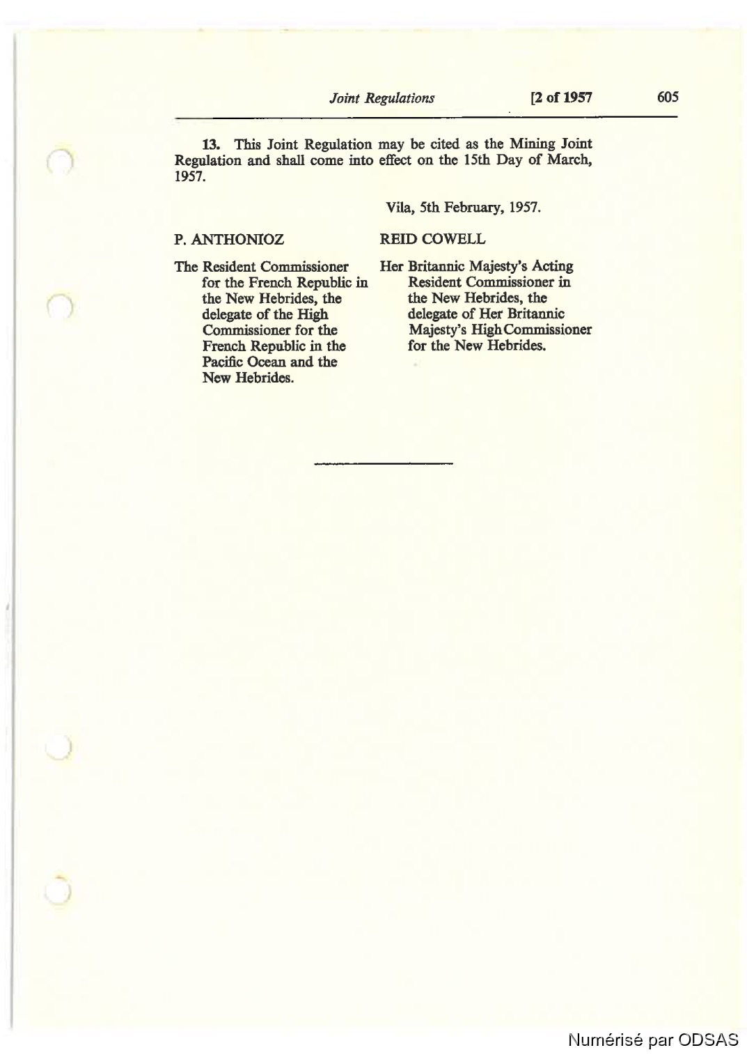 Quote this document Commissaires, Résidents 1973 [accessed: 2026/2/3]. "Règlementation Conjointe des Nouvelles-Hébrides, Tome 1" (Object Id: 197702). In Règlementation Conjointe des Nouvelles-Hébrides, Tome 1. ODSAS: https://www.odsas.net/object/197702.