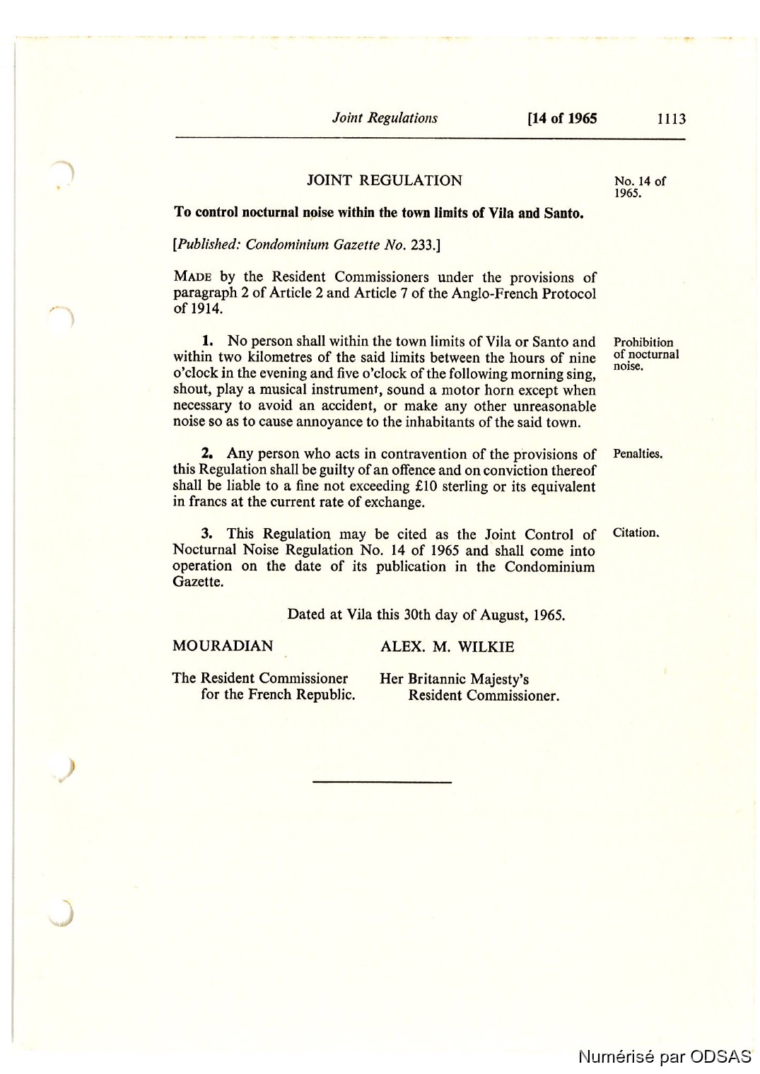 Quote this document Commissaires, Résidents 1973 [accessed: 2026/2/14]. "Règlementation Conjointe des Nouvelles-Hébrides, Tome 2" (Object Id: 198212). In Règlementation Conjointe des Nouvelles-Hébrides, Tome 2. ODSAS: https://www.odsas.net/object/198212.