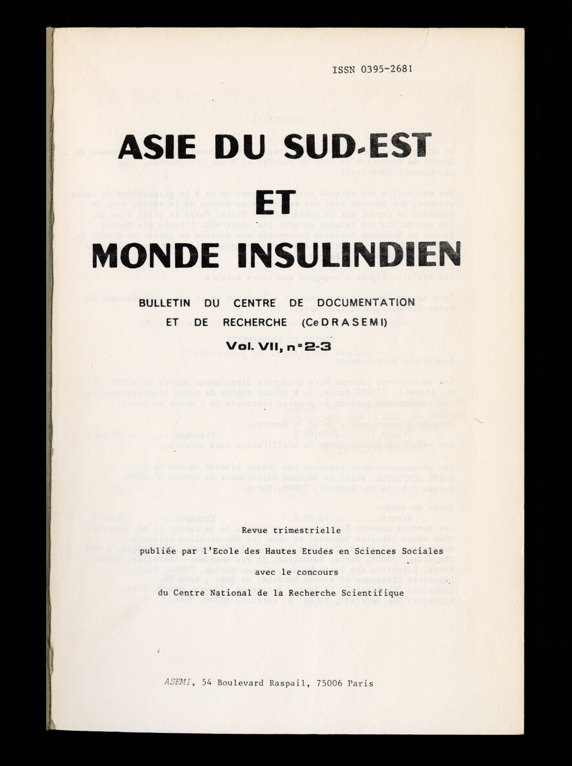 Asie du Sud-Est : Revue ASEMI [