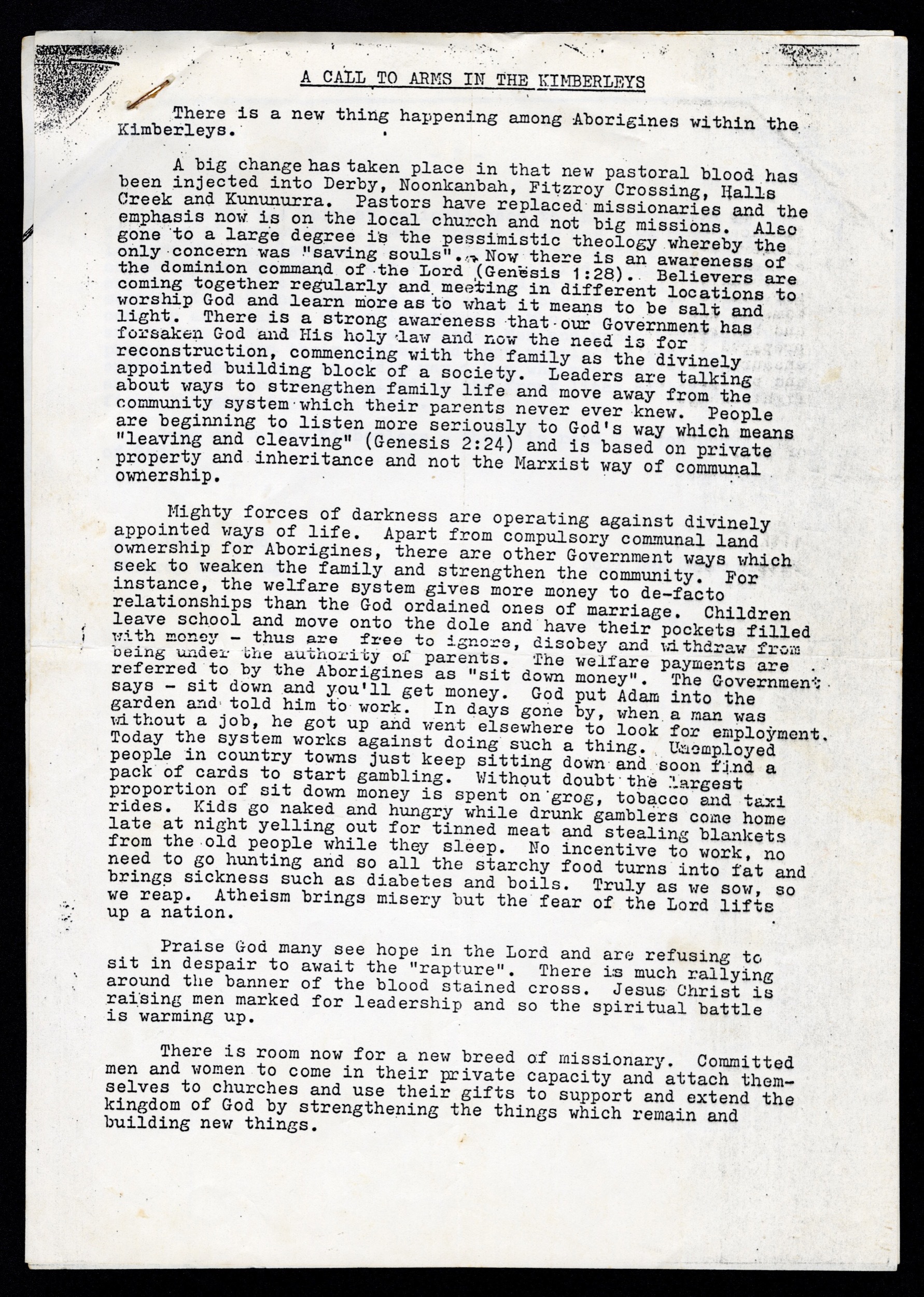 Soli Deo, Gloria; Boska, Bob 1986-06-11 [accessed: 2026/2/5]. "A call to arms in the kimberleys" (Object Id: 313383). In