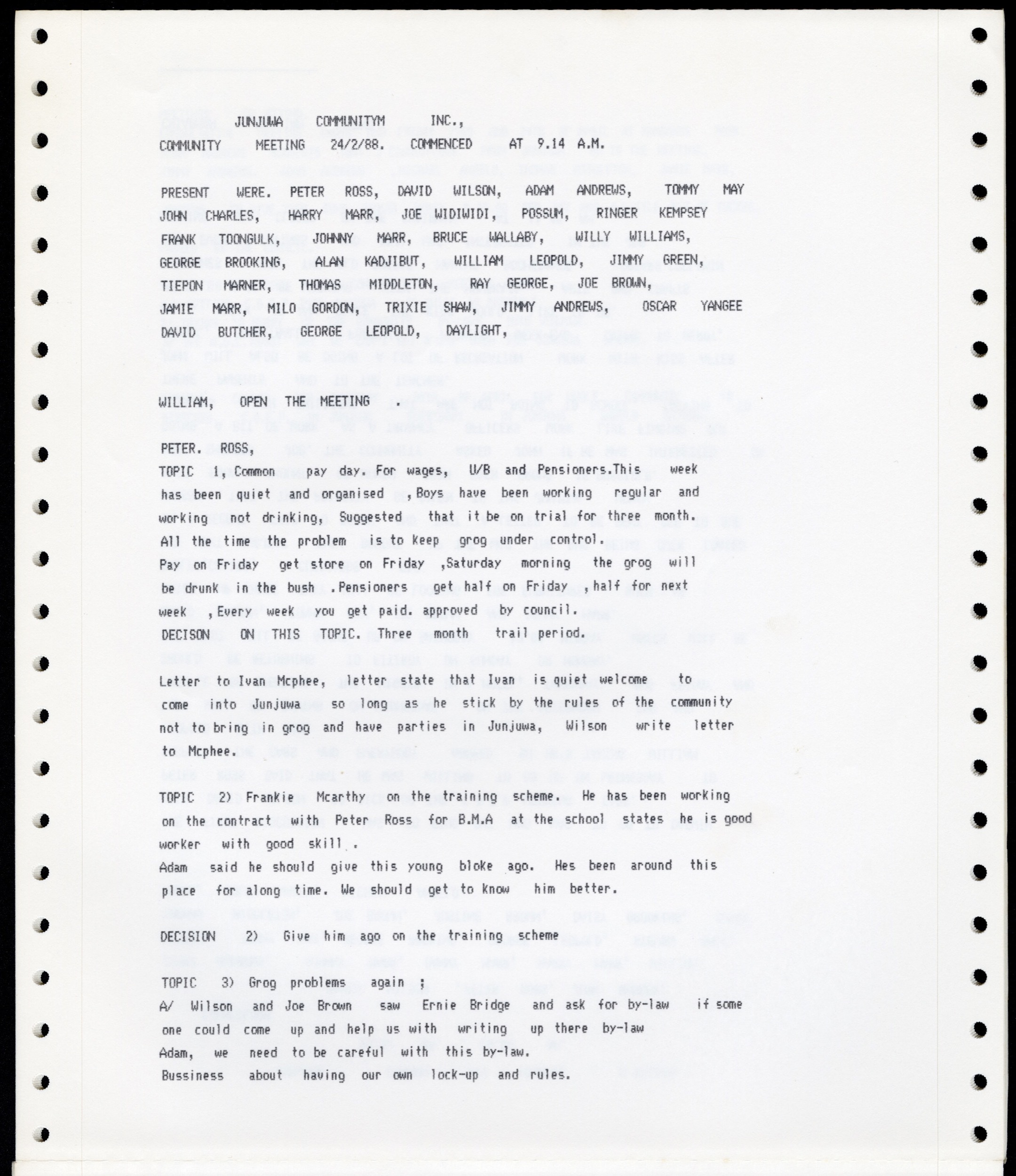 Junjuwa Community Inc. Council meeting from 01/07/1987 to 20/09/1988 [