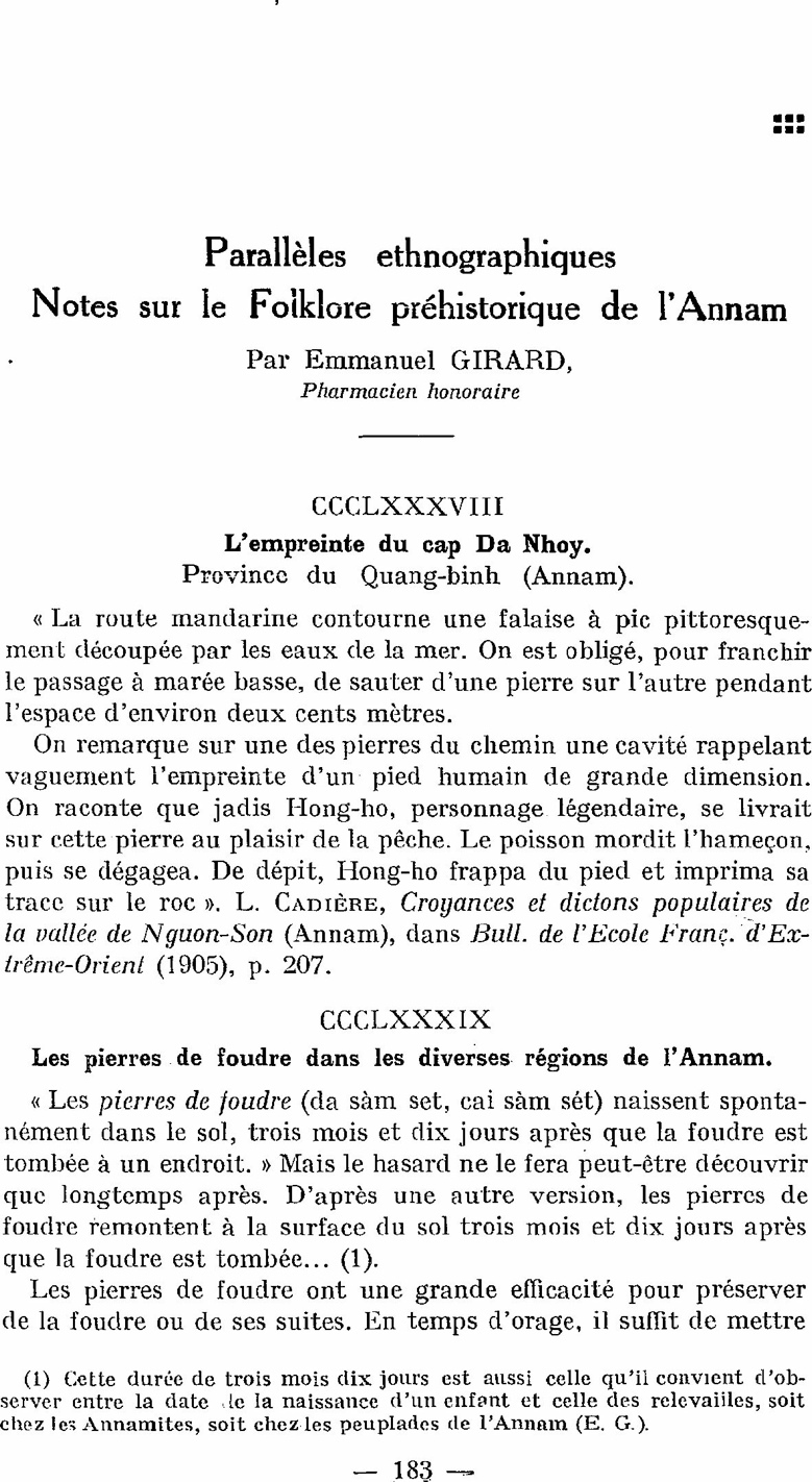 Parallèles ethnographiques. Notes sur le Folklore préhistorique de l'Annam