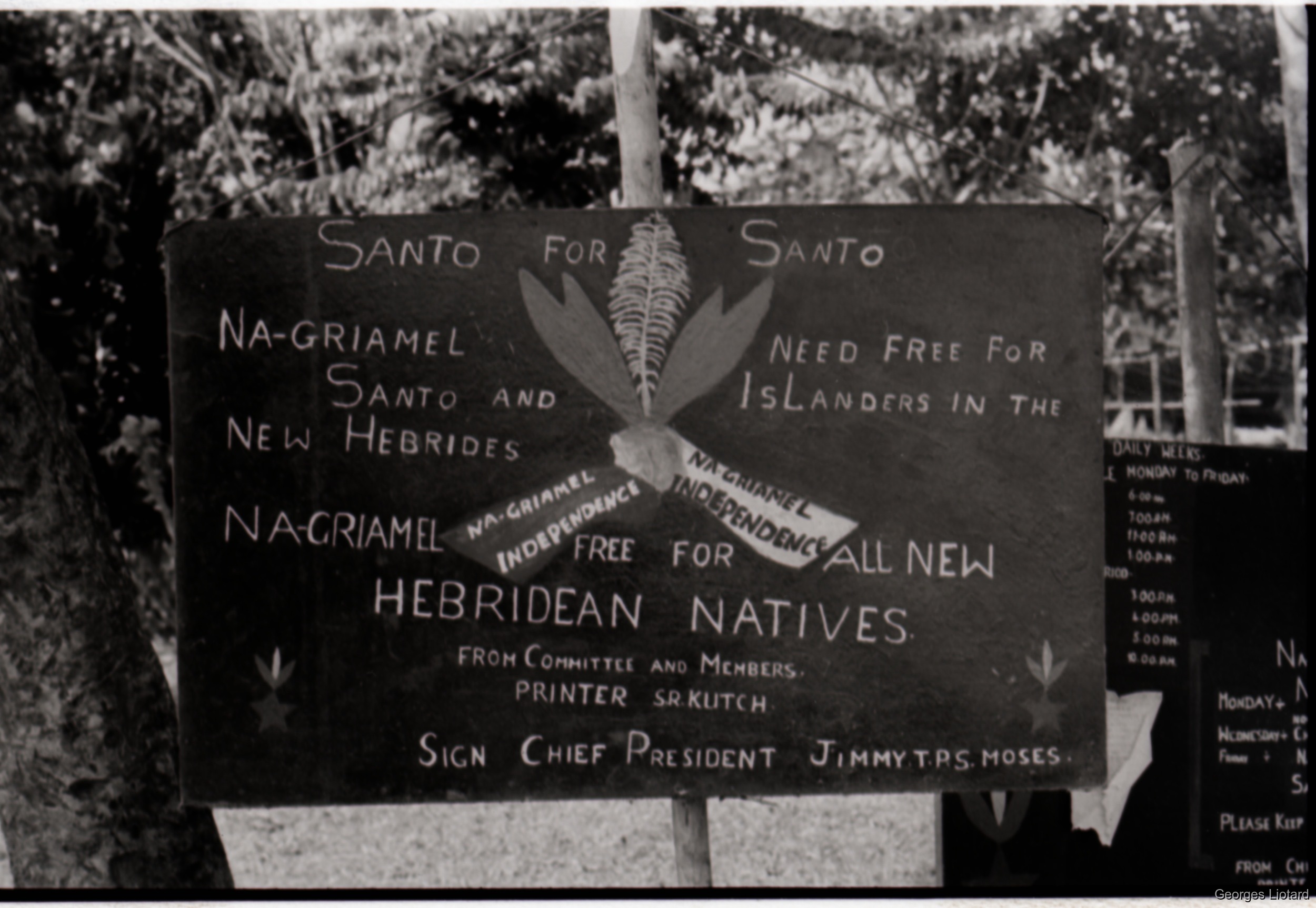 Quote this document Liotard, Georges 1974-10 [accessed: 2026/2/13]. "Ile de SANTO - Nagriamel" (Object Id: 64158). In Ile de SANTO - Nagriamel. ODSAS: https://www.odsas.net/object/64158.