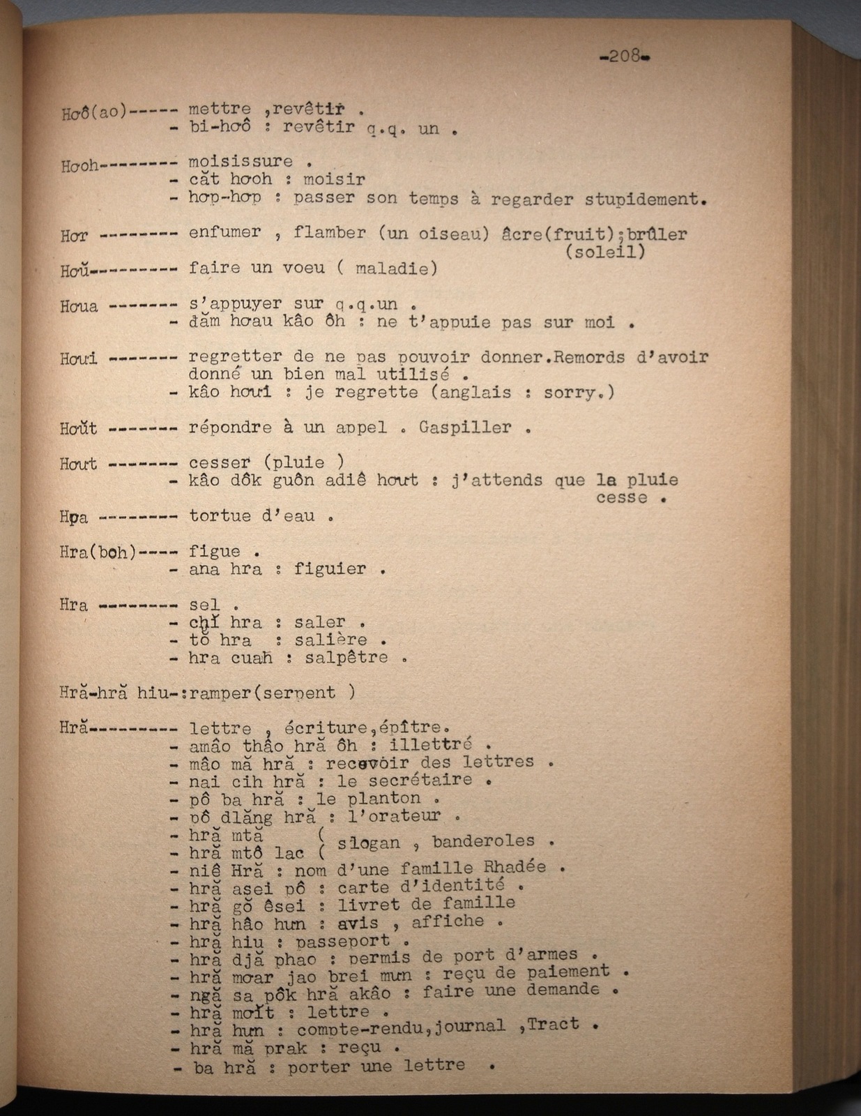 Dictionnaire rhadé-français par Davias-Baudrit / lettre H: lettre HR / Davias-Baudrit M.E.P, Jean-René /  Viet Nam/ Viet Nam