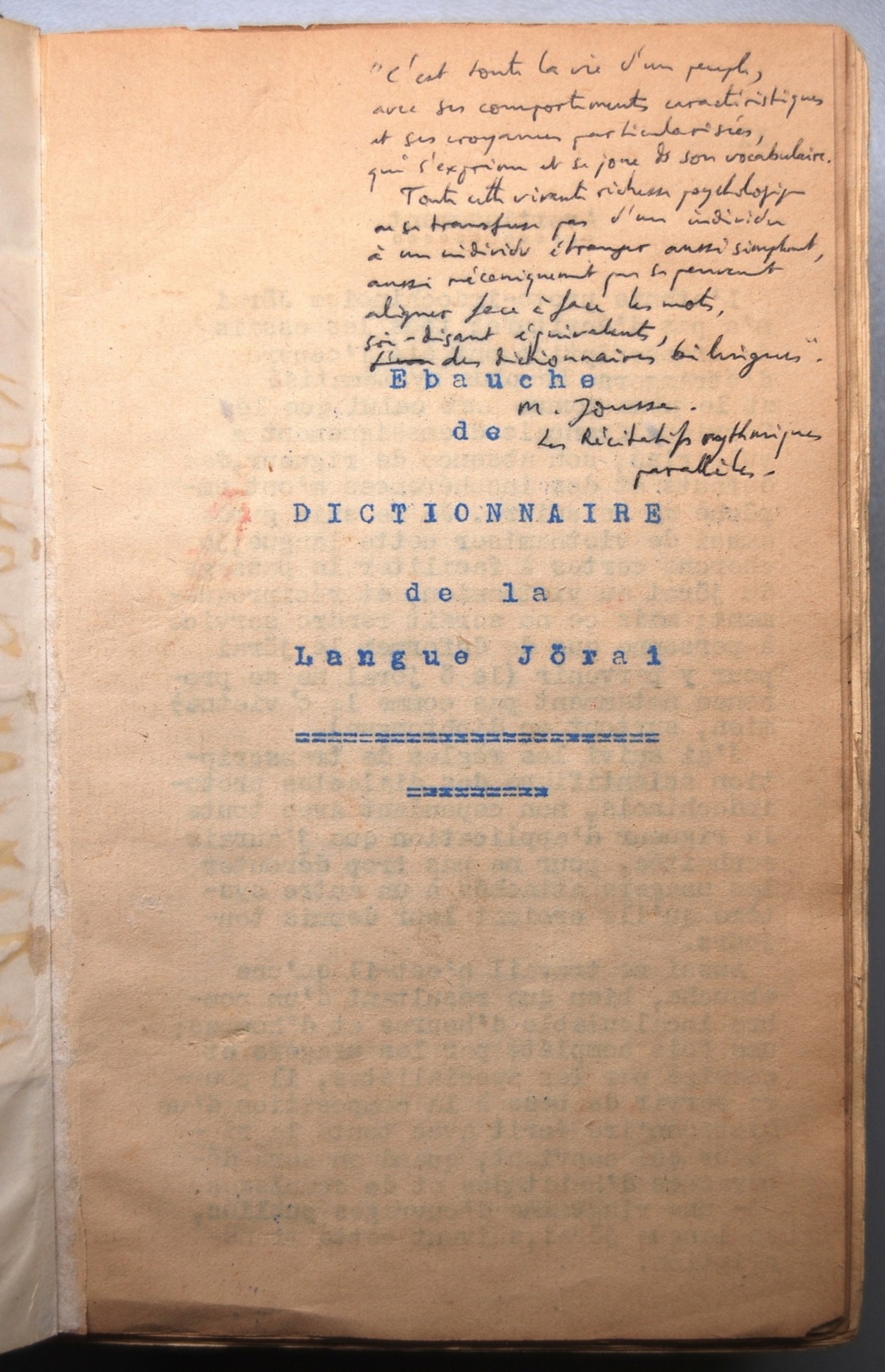 Ebauche de Dictionnaire de la Langue Jörai, Jacques Dournes [