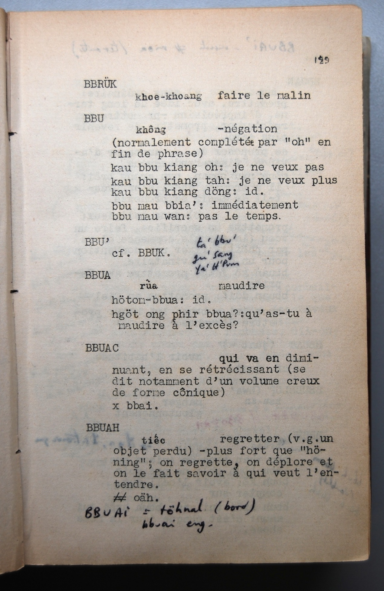 Ebauche de Dictionnaire de la Langue Jörai, Jacques Dournes [