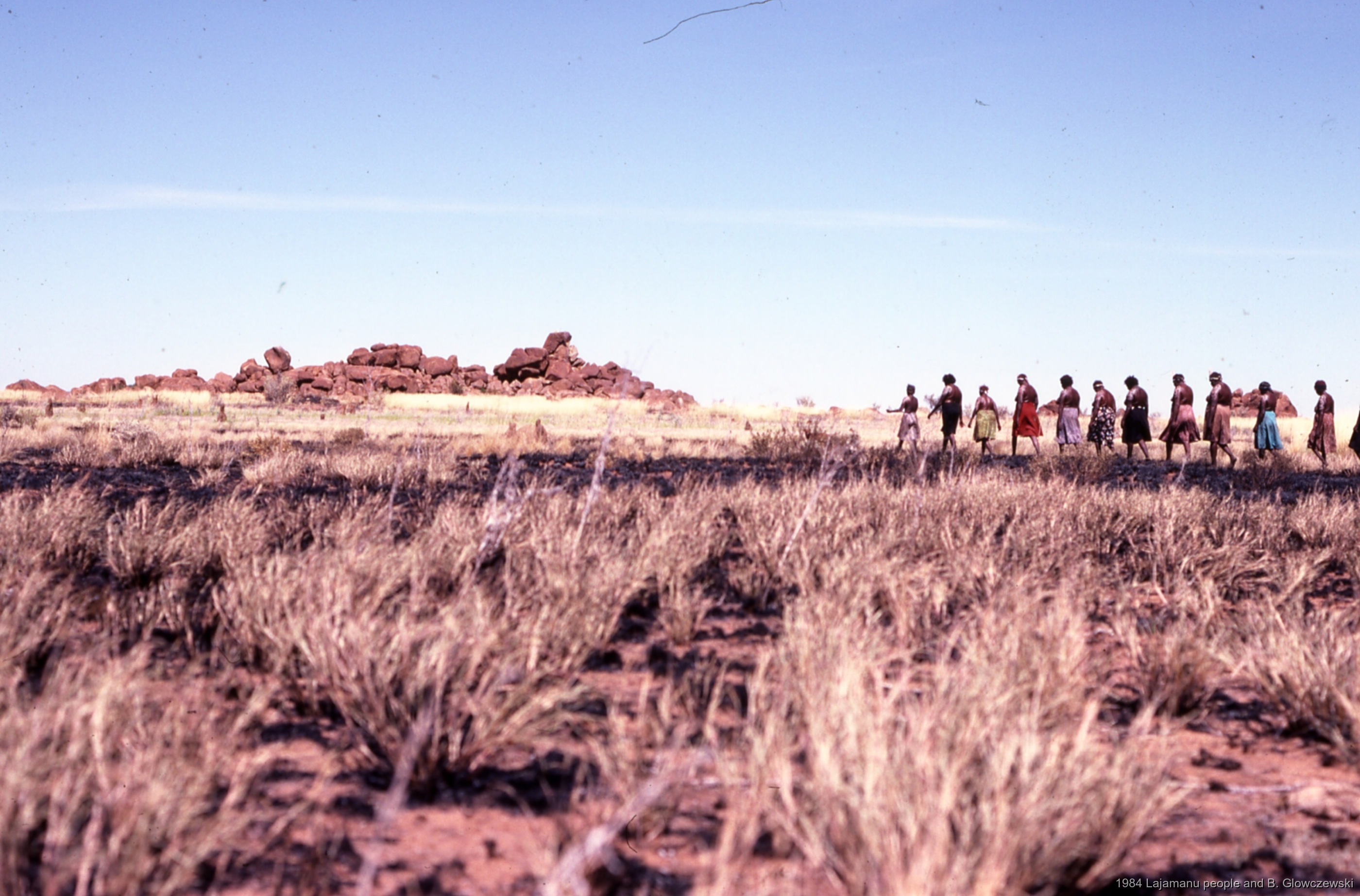 Glowczewski, Barbara 1984/04/13 [accessed: 2026/1/30]. "Walk to 'snake' place as the jukurrpa (Dreamtime) women did; Making a video to protect Yarturluyarturlu" (Object Id: 83938). In