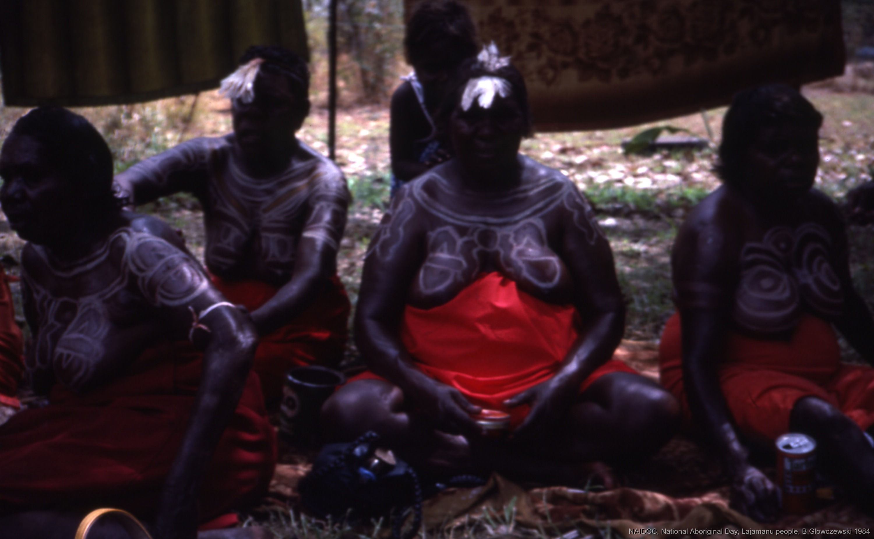 Quote this document Glowczewski, Barbara 1984/09/14 [accessed: 2026/1/26]. "Women painted for Jurntu purlapa. Public performance for NAIDOC" (Object Id: 84740). In NAIDOC: National Aboriginal Day, Lajamanu and Katherine, 1984 (photos). ODSAS: https://www.odsas.net/object/84740.
