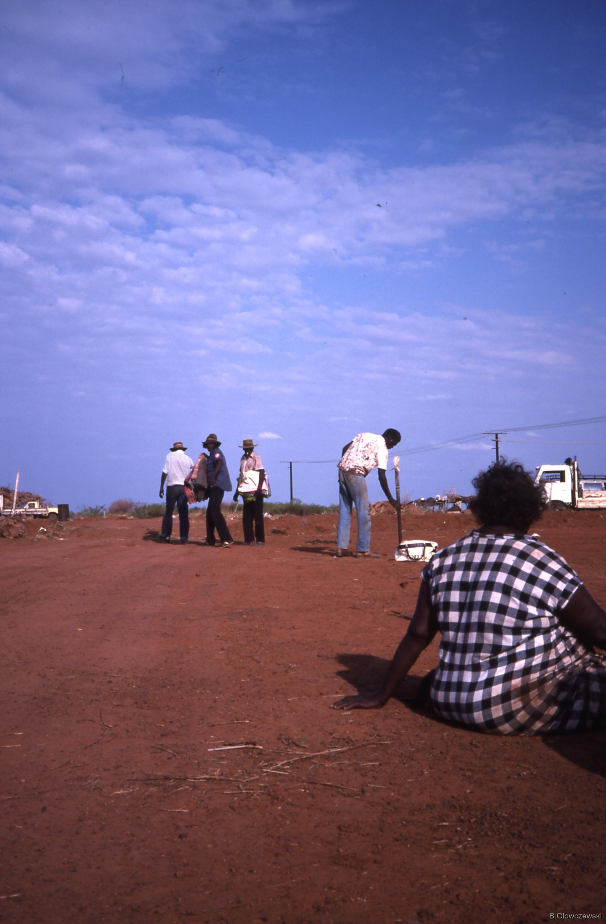 Glowczewski, Barbara 1984/09/11 [accessed: 2026/2/5]. "Mourning (sorry business) rituals and exchange: men get blankets from the women and touch their sacred painted stick (kuturru)" (Object Id: 85200). In