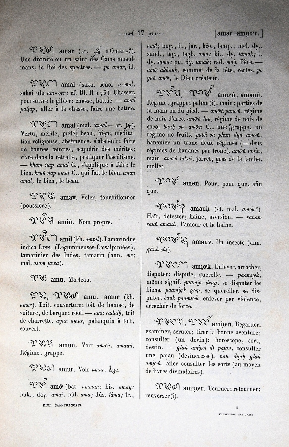 Quote this document Cabaton, Antoine; Aymonier, Etienne 1906 [accessed: 2026/1/20]. "Dictionnaire Cam-Français, E. Aymonier et A. Cabaton" (Object Id: 10722). In Dictionnaire Cam-Français, E. Aymonier et A. Cabaton. ODSAS: https://www.odsas.net/object/10722.