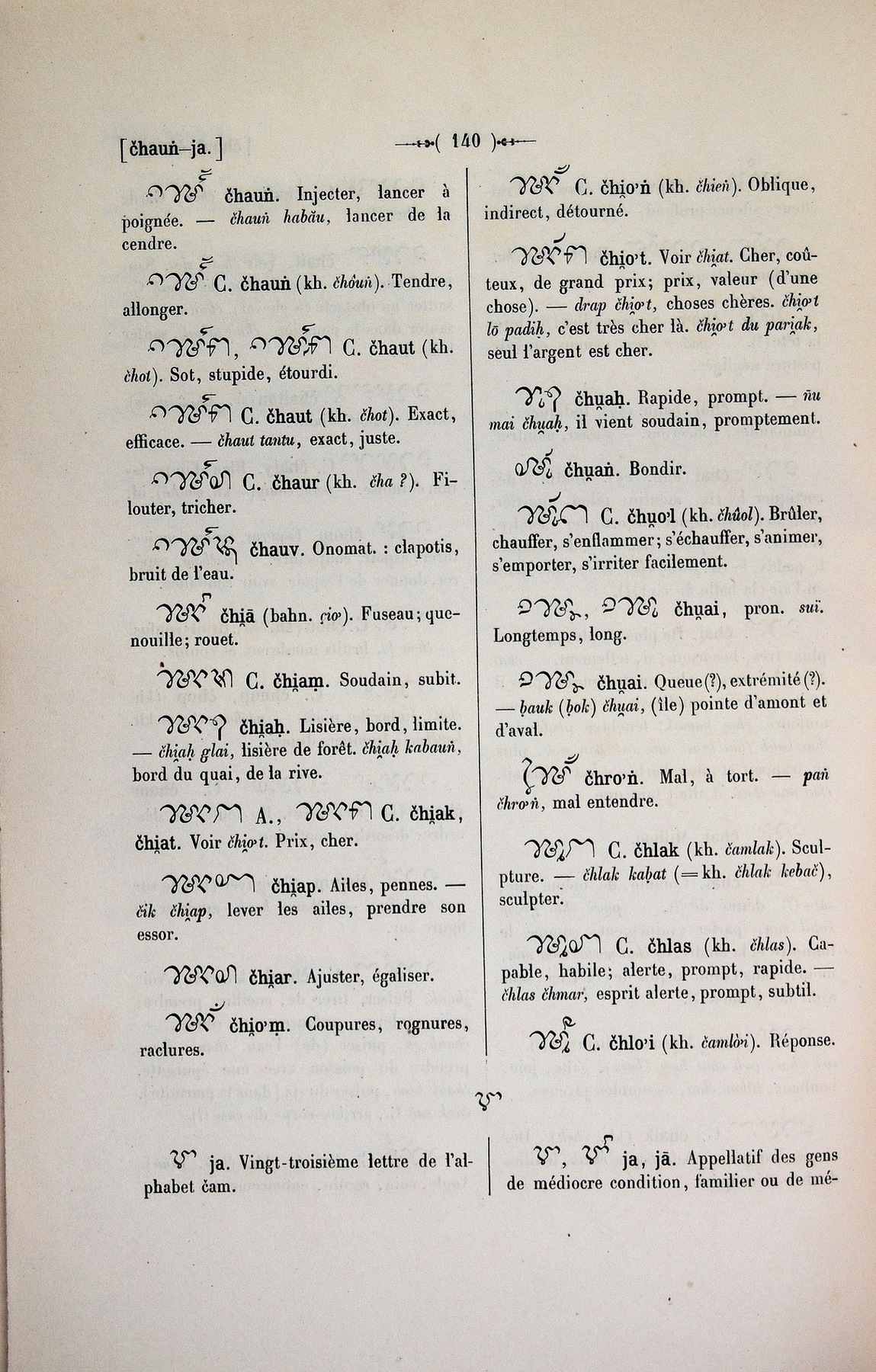 Quote this document Cabaton, Antoine; Aymonier, Etienne 1906 [accessed: 2026/1/20]. "ja" (Object Id: 10845). In Dictionnaire Cam-Français, E. Aymonier et A. Cabaton. ODSAS: https://www.odsas.net/object/10845.
