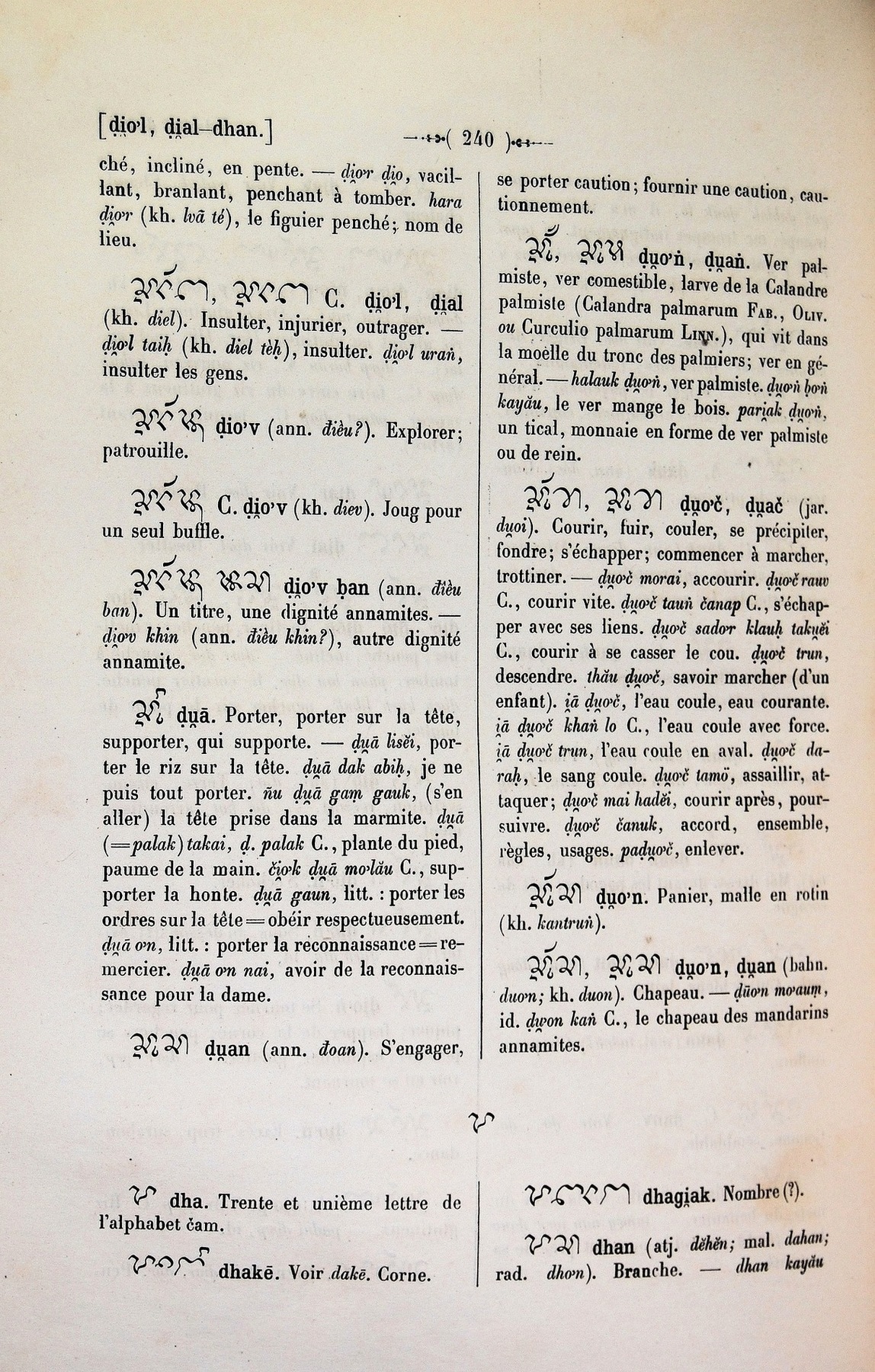 Quote this document Cabaton, Antoine; Aymonier, Etienne 1906 [accessed: 2026/1/20]. "dh" (Object Id: 10945). In Dictionnaire Cam-Français, E. Aymonier et A. Cabaton. ODSAS: https://www.odsas.net/object/10945.
