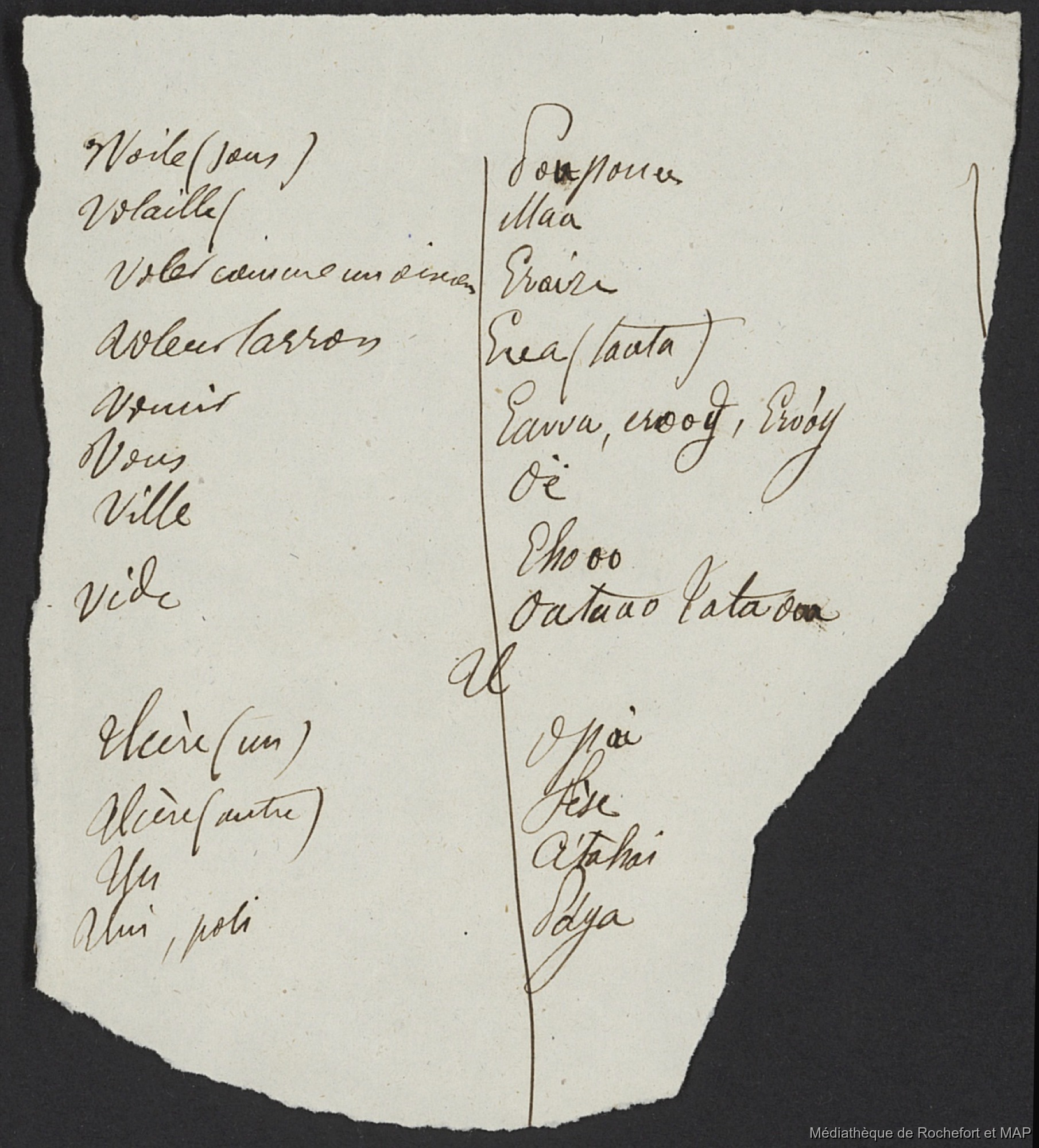 Lesson, Pierre-Adolphe [accessed: 2026/2/11]. "Vocabulaire de la langue des isles de La Société (B172996201_BM48122)" (Object Id: 111325). In