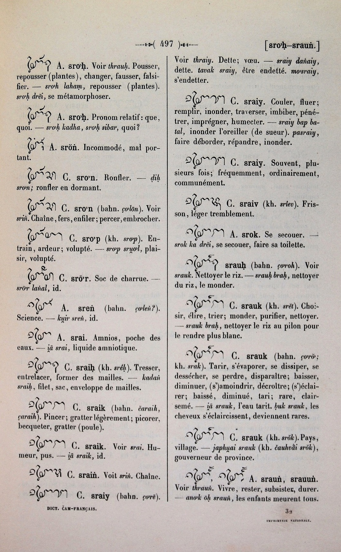 Quote this document Cabaton, Antoine; Aymonier, Etienne 1906 [accessed: 2026/1/20]. "srau" (Object Id: 11202). In Dictionnaire Cam-Français, E. Aymonier et A. Cabaton. ODSAS: https://www.odsas.net/object/11202.
