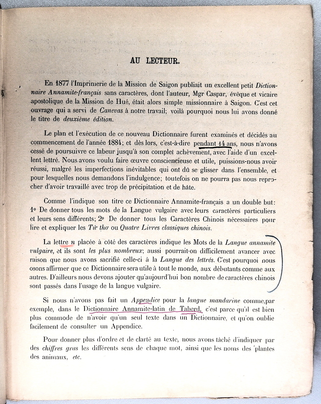 Dictionnaire Annamite-Français, par J.F.M. Génibrel / Au Lecteur / Génibrel, J.F.M. /  Viet Nam/ Viet Nam