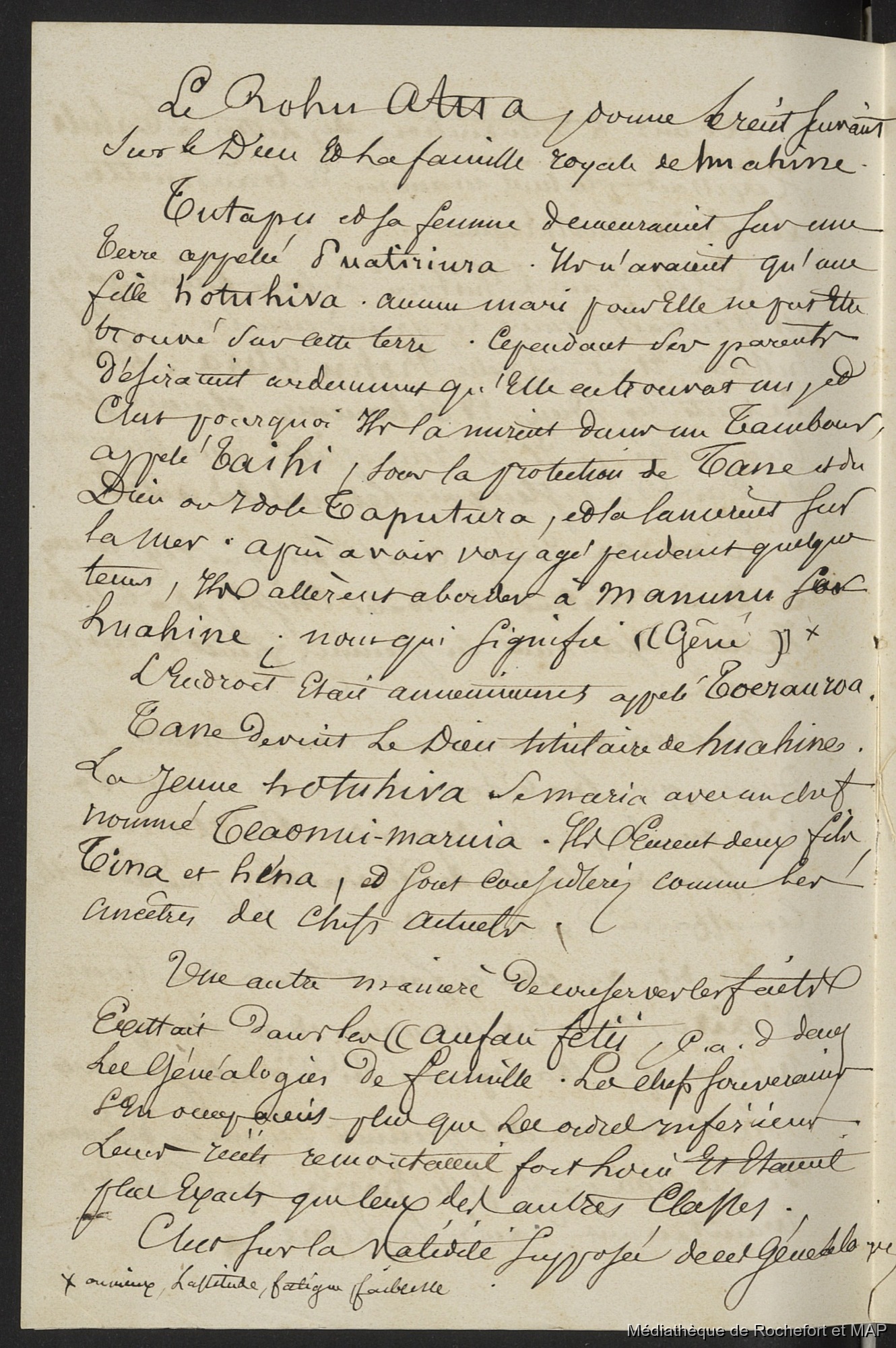 Quote this document Lesson, Pierre-Adolphe [accessed: 2026/2/11]. "Documents sur Tahiti (B172996201_MS_00059)" (Object Id: 117394). In Documents sur Tahiti (B172996201_MS_00059). ODSAS: https://www.odsas.net/object/117394.