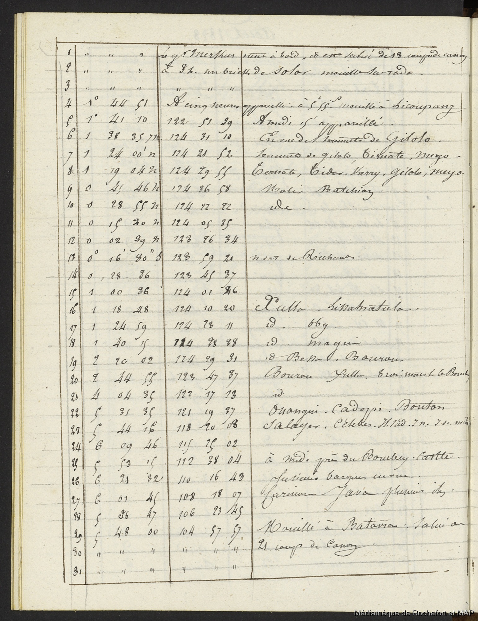 Quote this document Lesson, Pierre-Adolphe 1826-1829 [accessed: 2026/2/3]. "Journal de bord ( voyage de l'Astrolabe) (B172996201_MS_00111)" (Object Id: 120188). In Journal de bord ( voyage de l'Astrolabe) (B172996201_MS_00111). ODSAS: https://www.odsas.net/object/120188.
