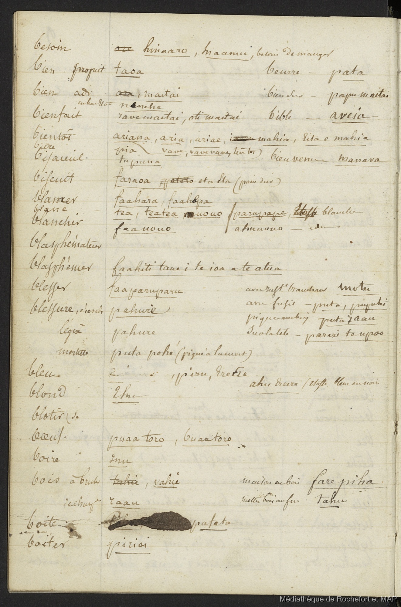 Lesson, Pierre-Adolphe 1844-1849 [accessed: 2026/2/12]. "Vocabulaire de l'Ile de Tahiti 1844 - 1849 (B172996201_Ms_00117)" (Object Id: 120274). In