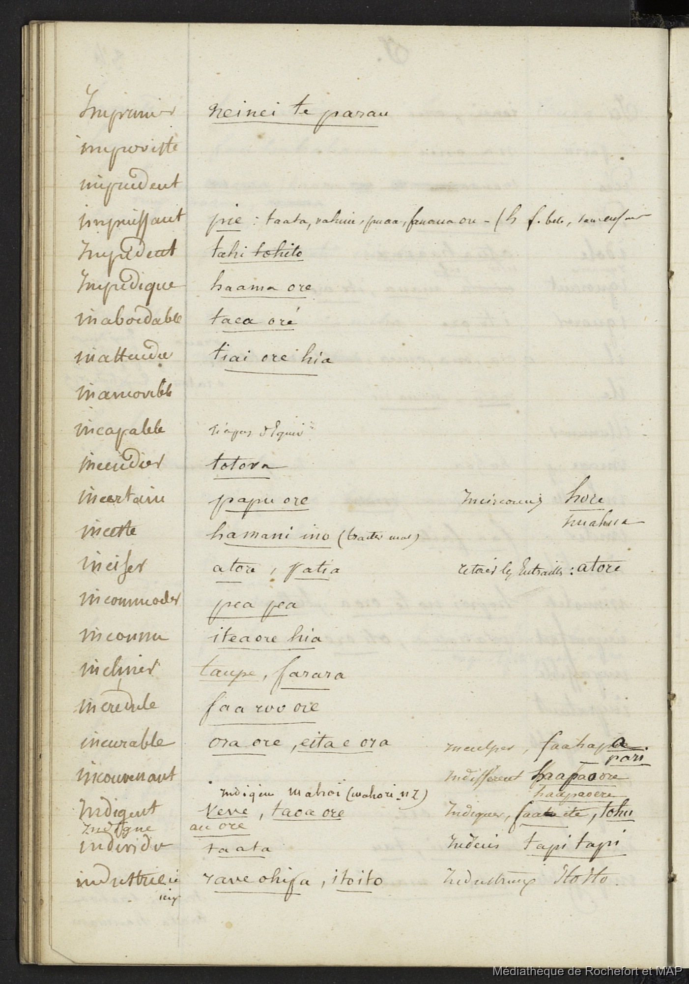 Vocabulaire de l'Ile de Tahiti 1844 - 1849 (B172996201_Ms_00117) [Set(s) 1178]