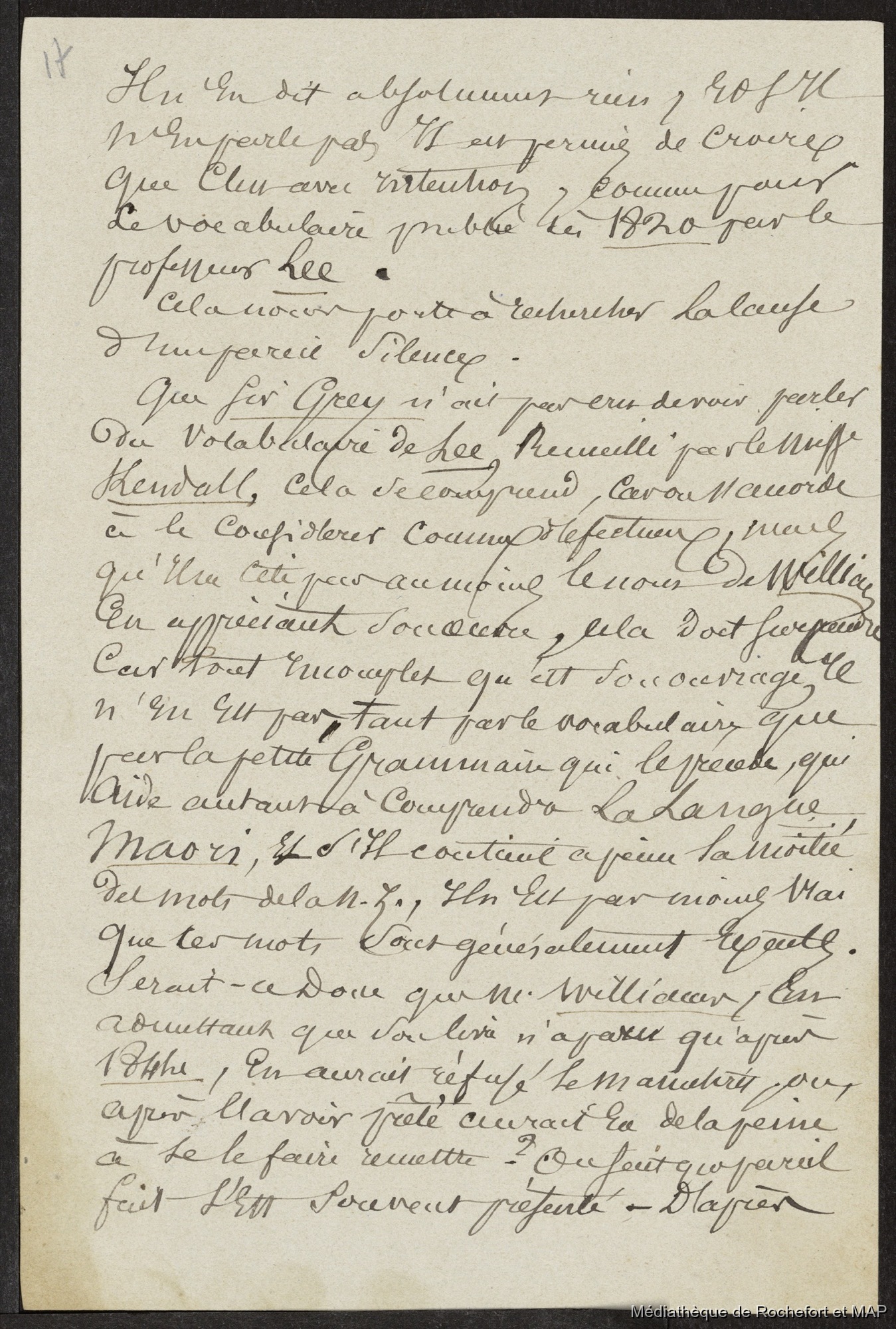 Lesson, Pierre-Adolphe [accessed: 2026/2/4]. "Notes pour la préface du dictionnaire tahitien traduit par moi (B172996201_Ms00058-02)" (Object Id: 120758). In