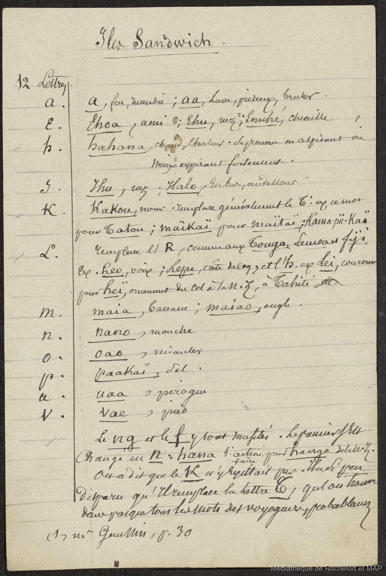 Quote this document Lesson, Pierre-Adolphe [accessed: 2026/2/4]. "Notes pour la préface du dictionnaire tahitien traduit par moi (B172996201_Ms00058-02)" (Object Id: 120807). In Notes pour la préface du dictionnaire tahitien traduit par moi (B172996201_Ms00058-02). ODSAS: https://www.odsas.net/object/120807.