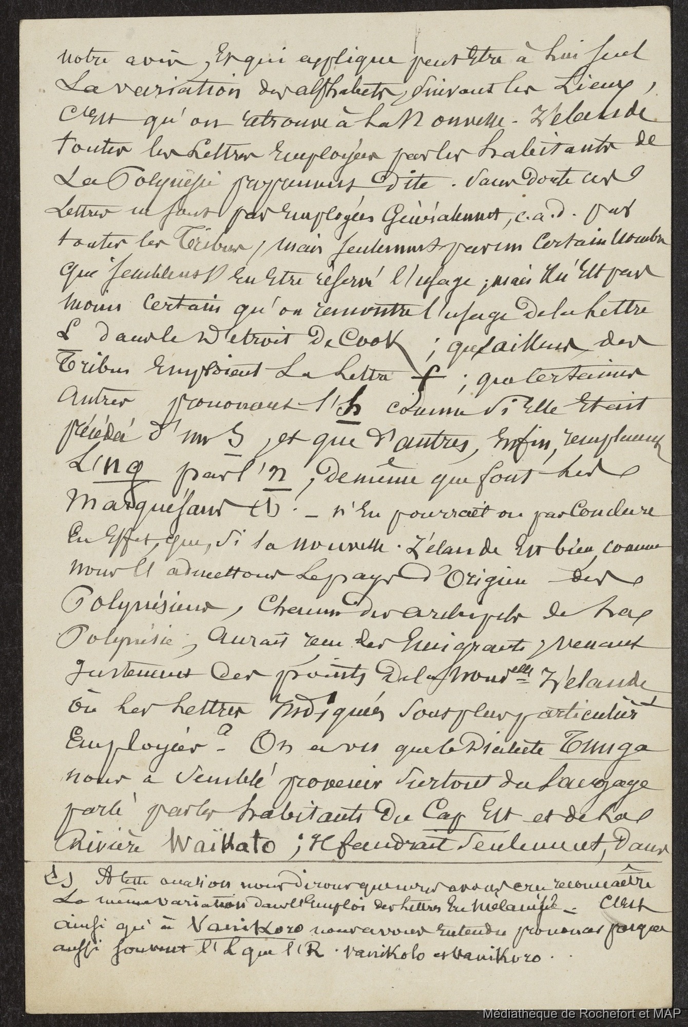 Quote this document Lesson, Pierre-Adolphe [accessed: 2026/2/4]. "Notes pour la préface du dictionnaire tahitien traduit par moi (B172996201_Ms00058-02)" (Object Id: 120819). In Notes pour la préface du dictionnaire tahitien traduit par moi (B172996201_Ms00058-02). ODSAS: https://www.odsas.net/object/120819.