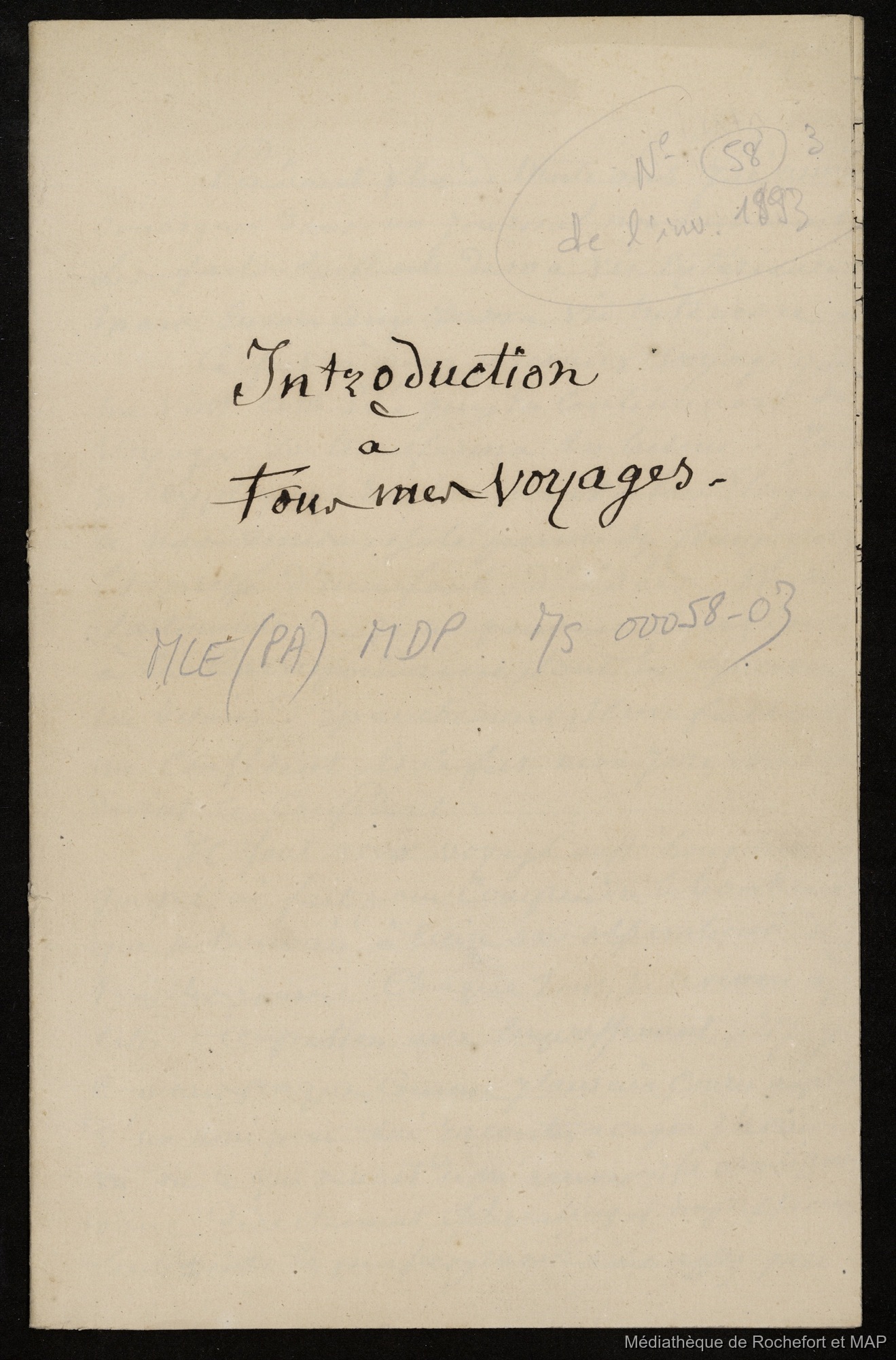 Title/DescriptionIntroduction à tous mes voyages (B172996201_Ms00058-03)