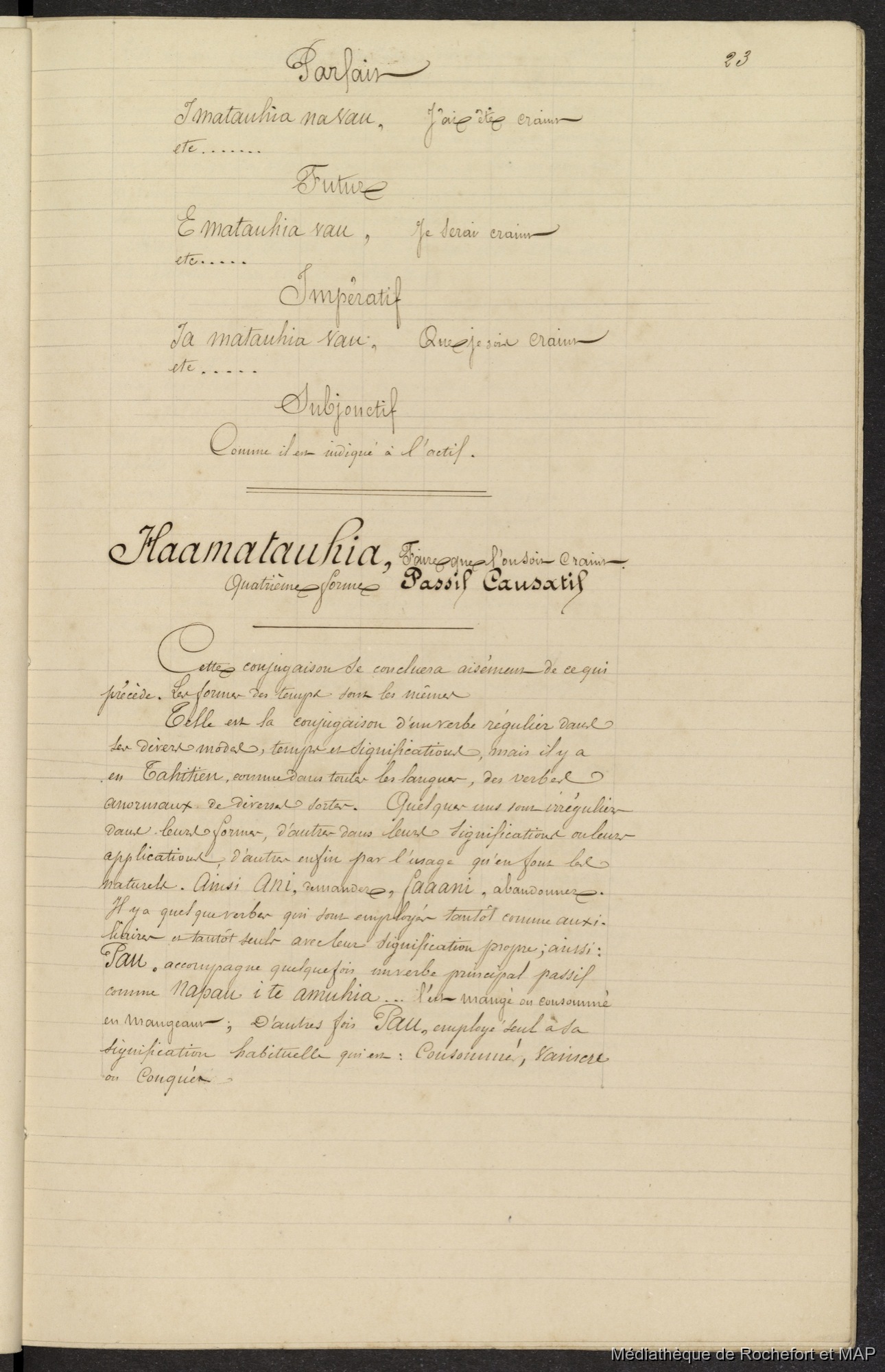Lesson, Pierre-Adolphe [accessed: 2026/2/2]. "Grammaire du dialecte tahitien (B172996201_Ms00140)" (Object Id: 121349). In