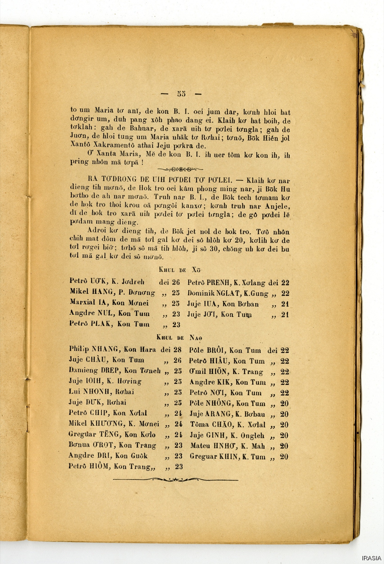Quote this document Dournes, Jacques 1946-1955 [accessed: 2026/2/3]. "Evangiles : Hlabar tobang" (Object Id: 125172). In Evangiles : Hlabar tobang. ODSAS: https://www.odsas.net/object/125172.