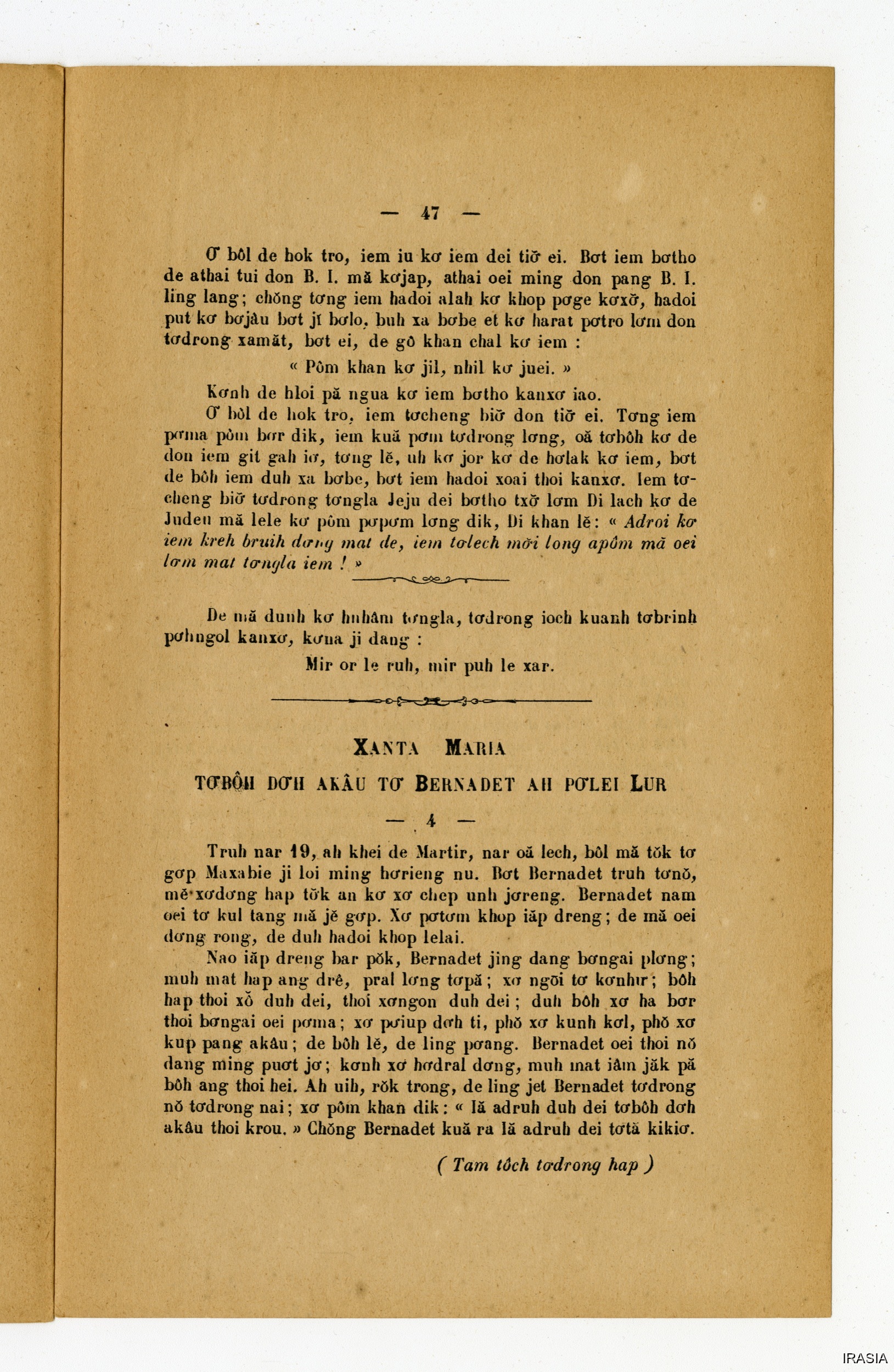 Quote this document Dournes, Jacques 1946-1955 [accessed: 2026/2/3]. "Evangiles : Hlabar tobang" (Object Id: 125263). In Evangiles : Hlabar tobang. ODSAS: https://www.odsas.net/object/125263.