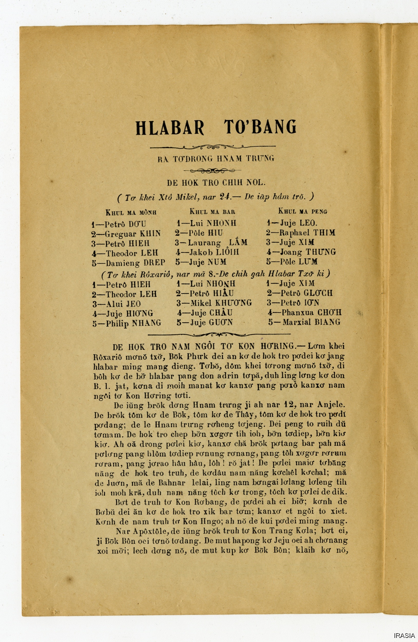 Quote this document Dournes, Jacques 1946-1955 [accessed: 2026/2/3]. "Evangiles : Hlabar tobang" (Object Id: 125378). In Evangiles : Hlabar tobang. ODSAS: https://www.odsas.net/object/125378.