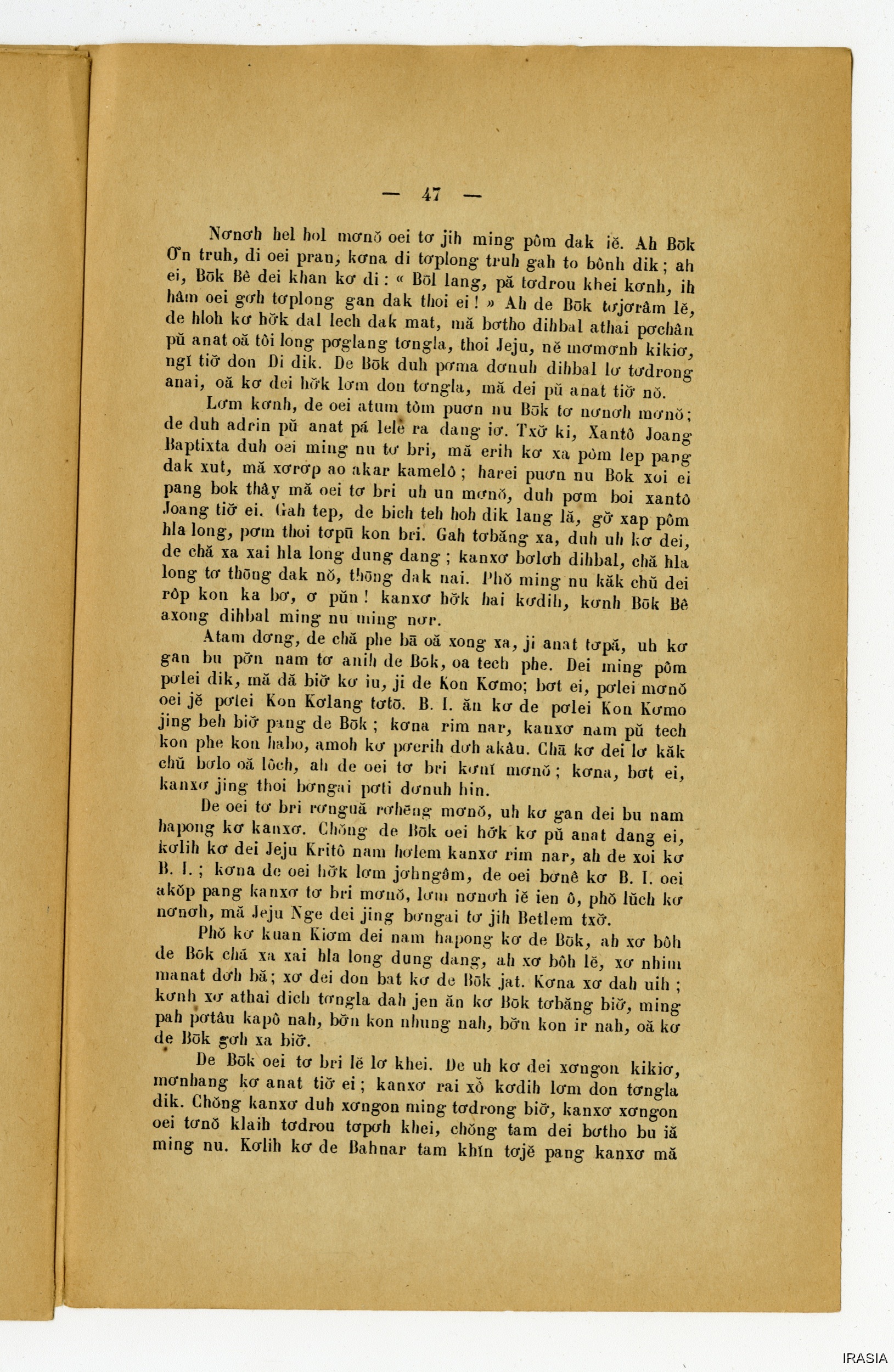 Quote this document Dournes, Jacques 1946-1955 [accessed: 2026/2/3]. "Evangiles : Hlabar tobang" (Object Id: 125443). In Evangiles : Hlabar tobang. ODSAS: https://www.odsas.net/object/125443.