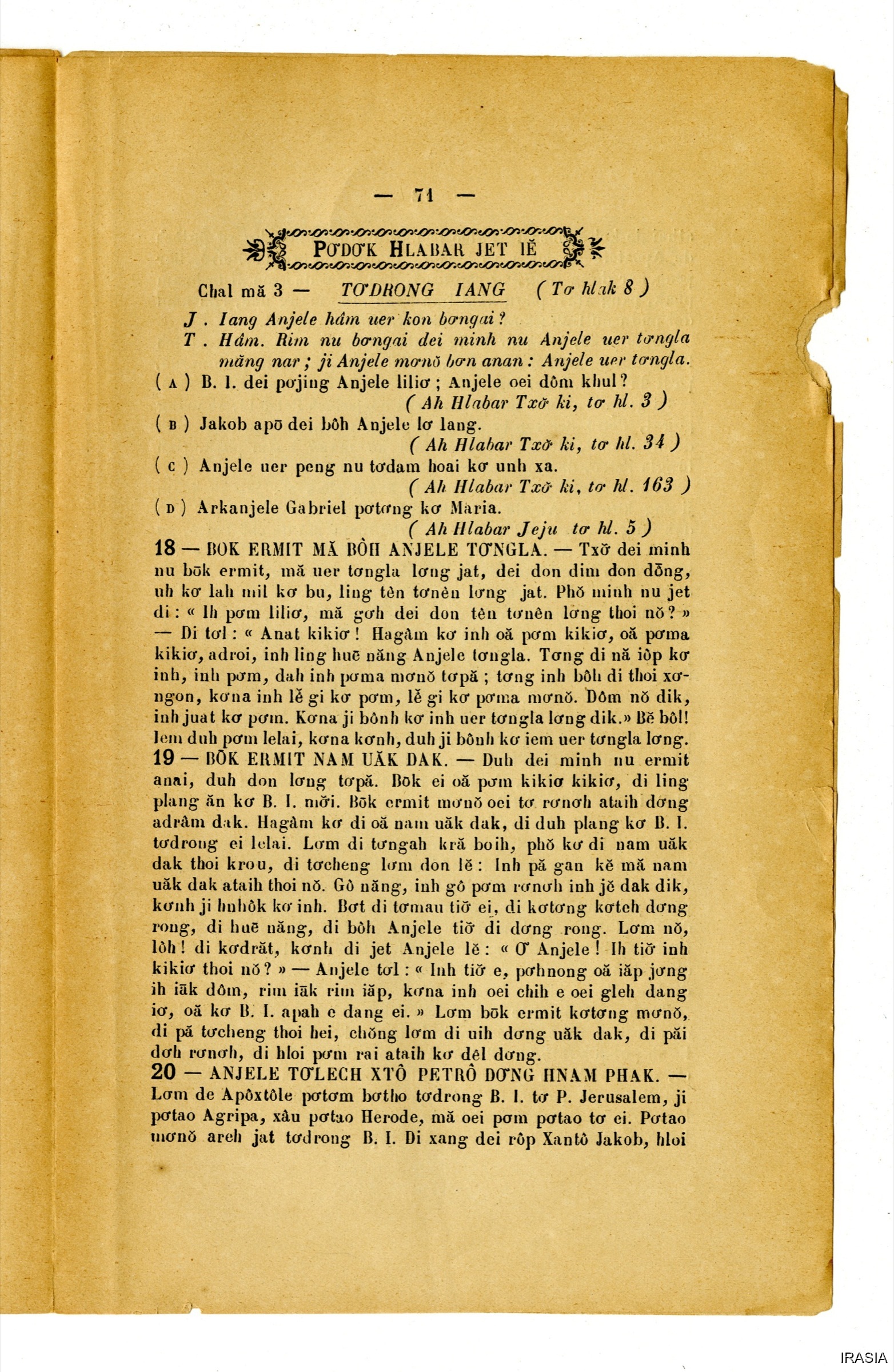 Quote this document Dournes, Jacques 1946-1955 [accessed: 2026/2/3]. "Evangiles : Hlabar tobang" (Object Id: 125663). In Evangiles : Hlabar tobang. ODSAS: https://www.odsas.net/object/125663.