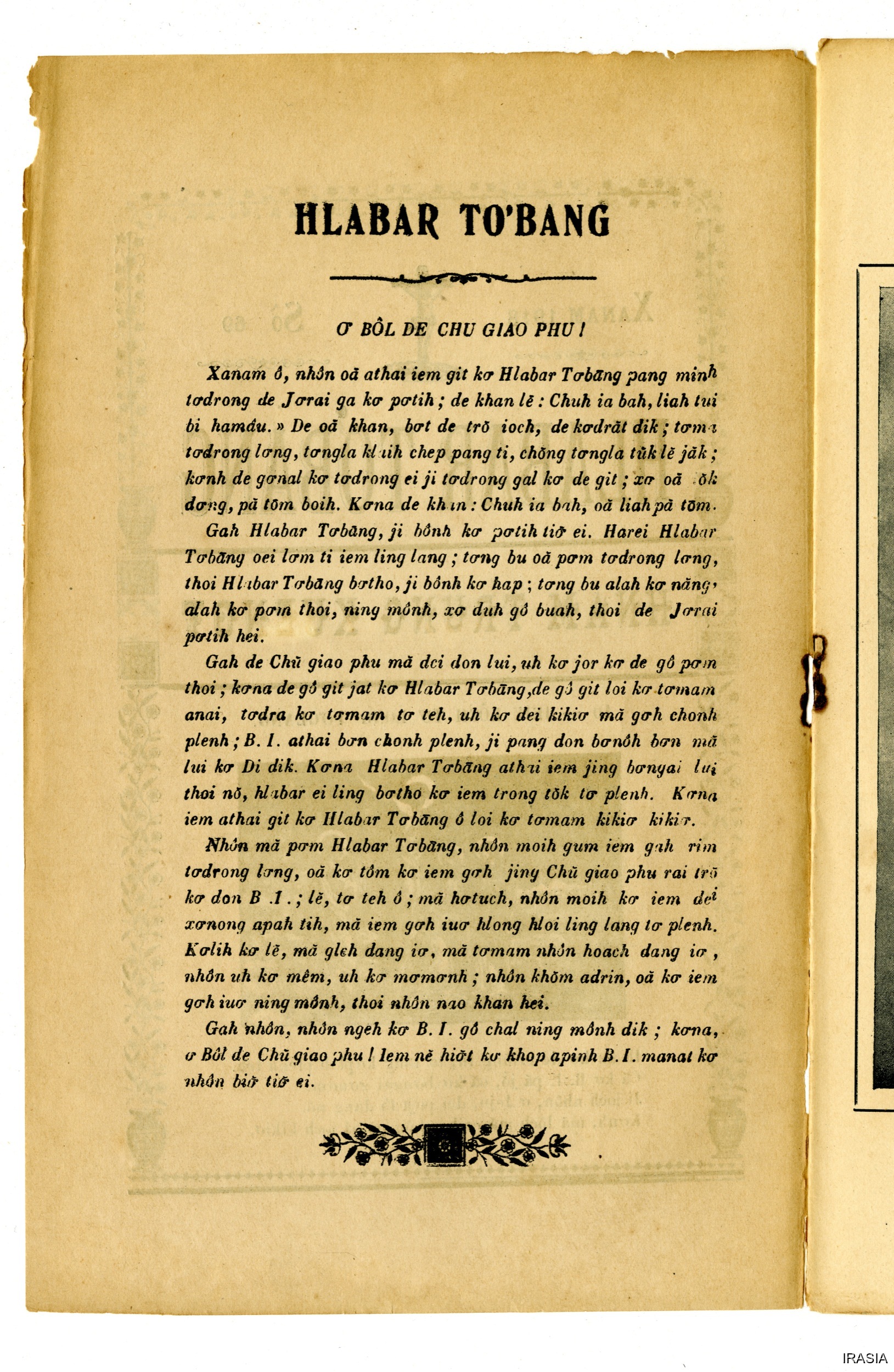 Quote this document Dournes, Jacques 1946-1955 [accessed: 2026/2/3]. "Evangiles : Hlabar tobang" (Object Id: 125706). In Evangiles : Hlabar tobang. ODSAS: https://www.odsas.net/object/125706.