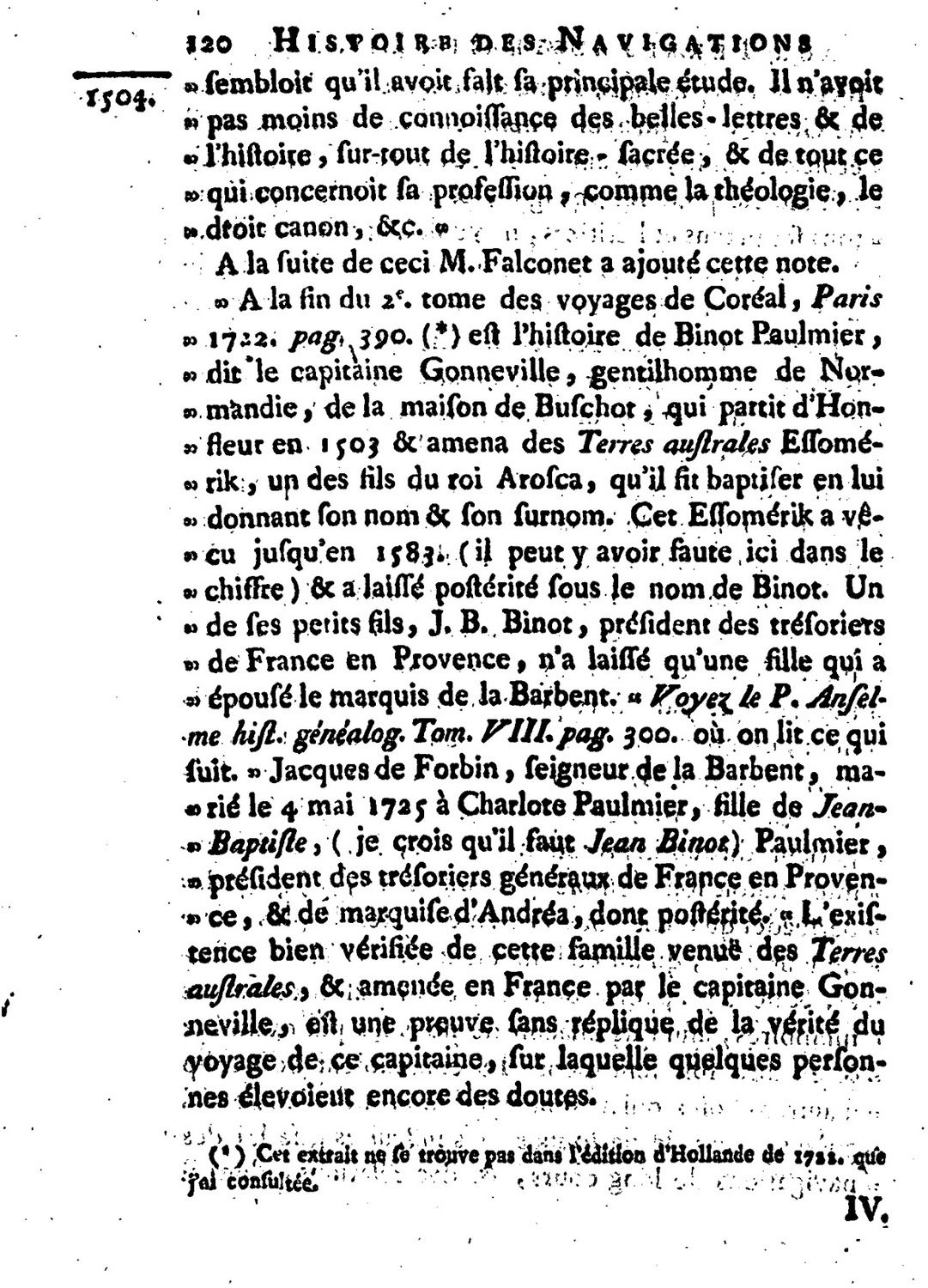 Quote this document De Brosses, Charles 1756 [accessed: 2026/2/3]. "Histoire des Navigations aux Terres Australes tome 1, Brosses, Charles de, 1709-1777 " (Object Id: 1371). In Histoire des Navigations aux Terres Australes tome 1, Brosses, Charles de, 1709-1777 . ODSAS: https://www.odsas.net/object/1371.