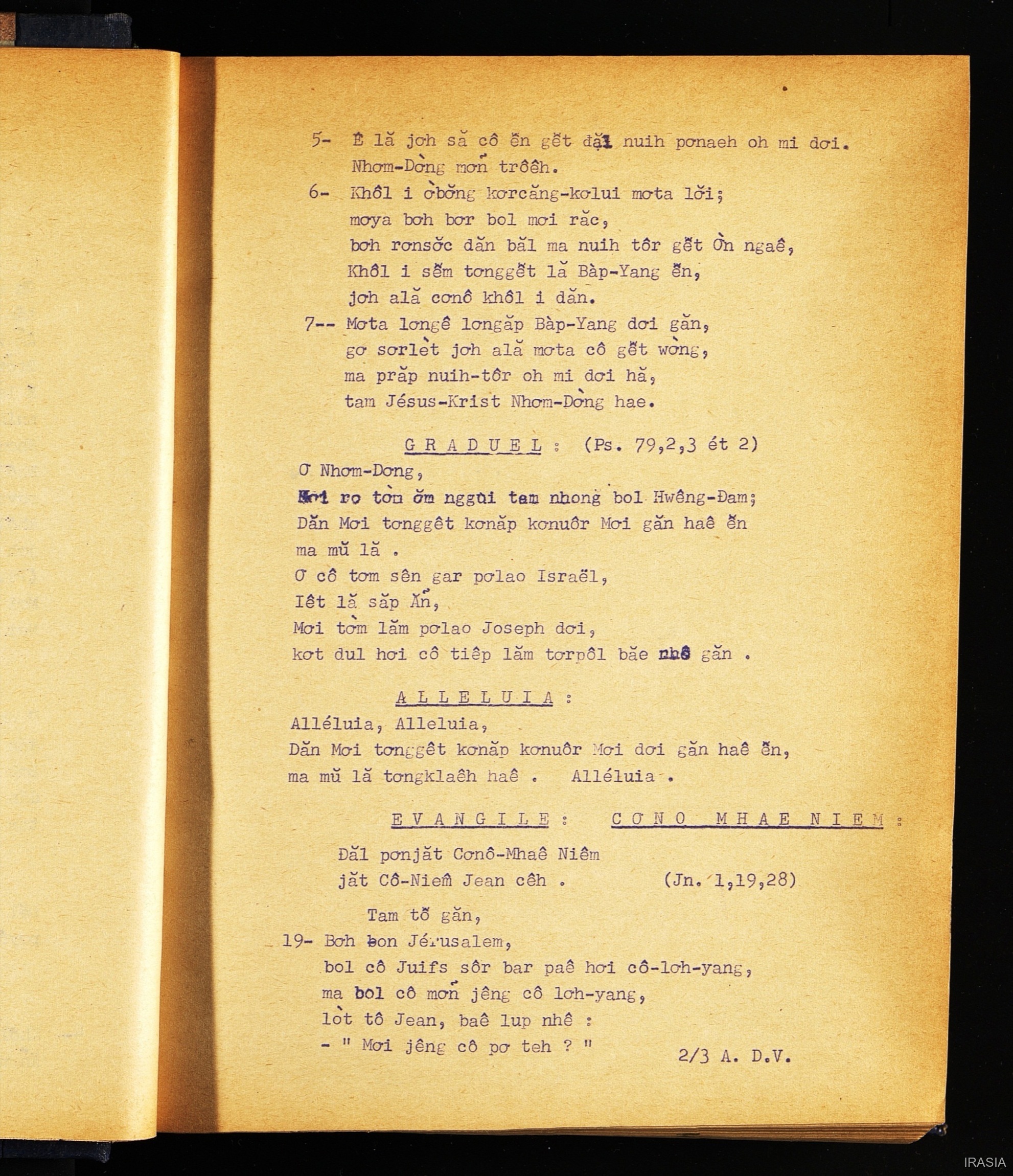 Quote this document Dournes, Jacques 1946-1955 [accessed: 2026/2/2]. "Evangiles : Sra lo hyang" (Object Id: 146180). In Evangiles : Sra lo hyang. ODSAS: https://www.odsas.net/object/146180.