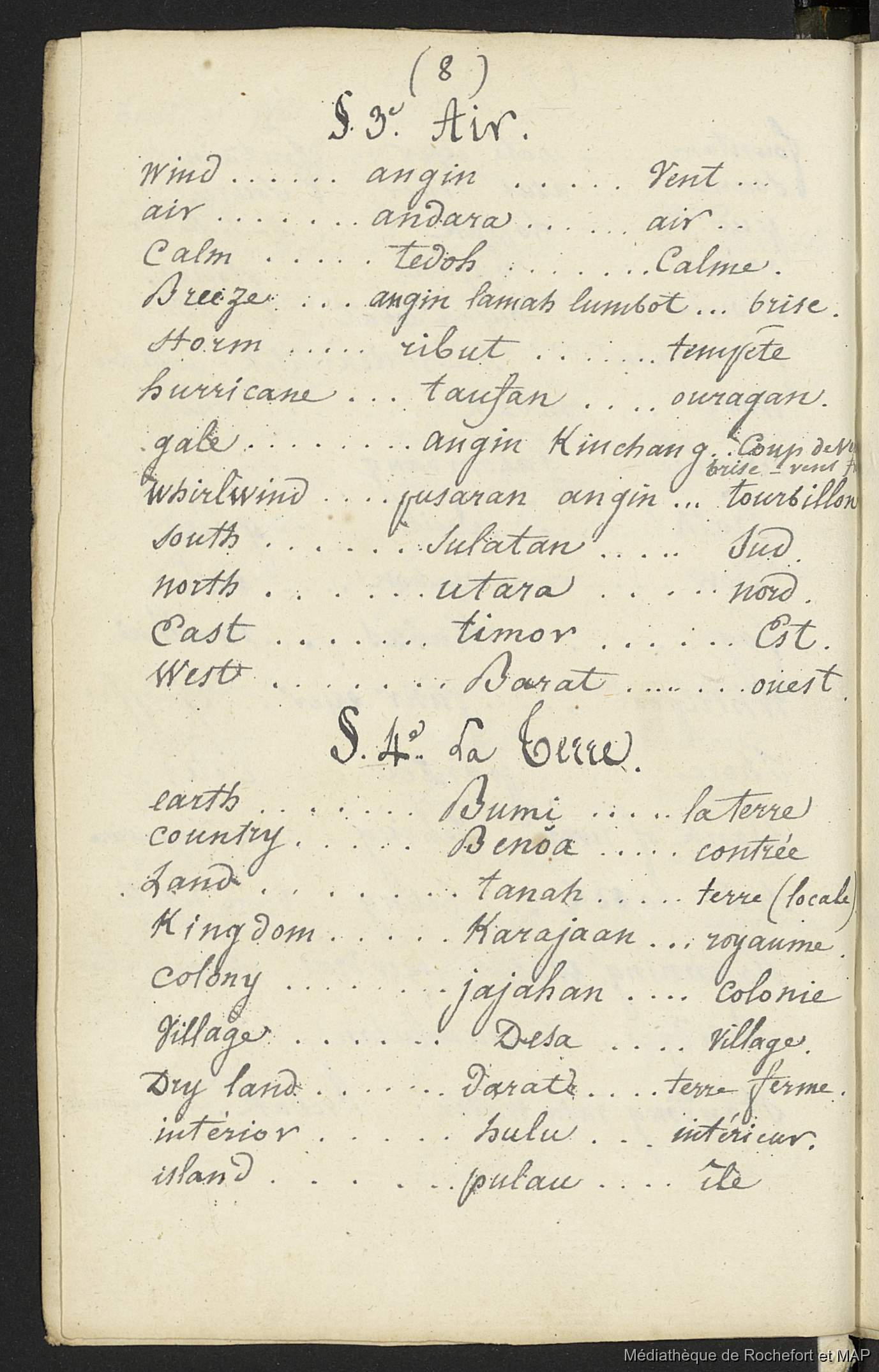 Quote this document Lesson, Pierre-Adolphe [accessed: 2026/1/15]. "Vocabulaire anglais, malais et français (B172996201_BM08191)" (Object Id: 157891). In Vocabulaire anglais, malais et français (B172996201_BM08191). ODSAS: https://www.odsas.net/object/157891.