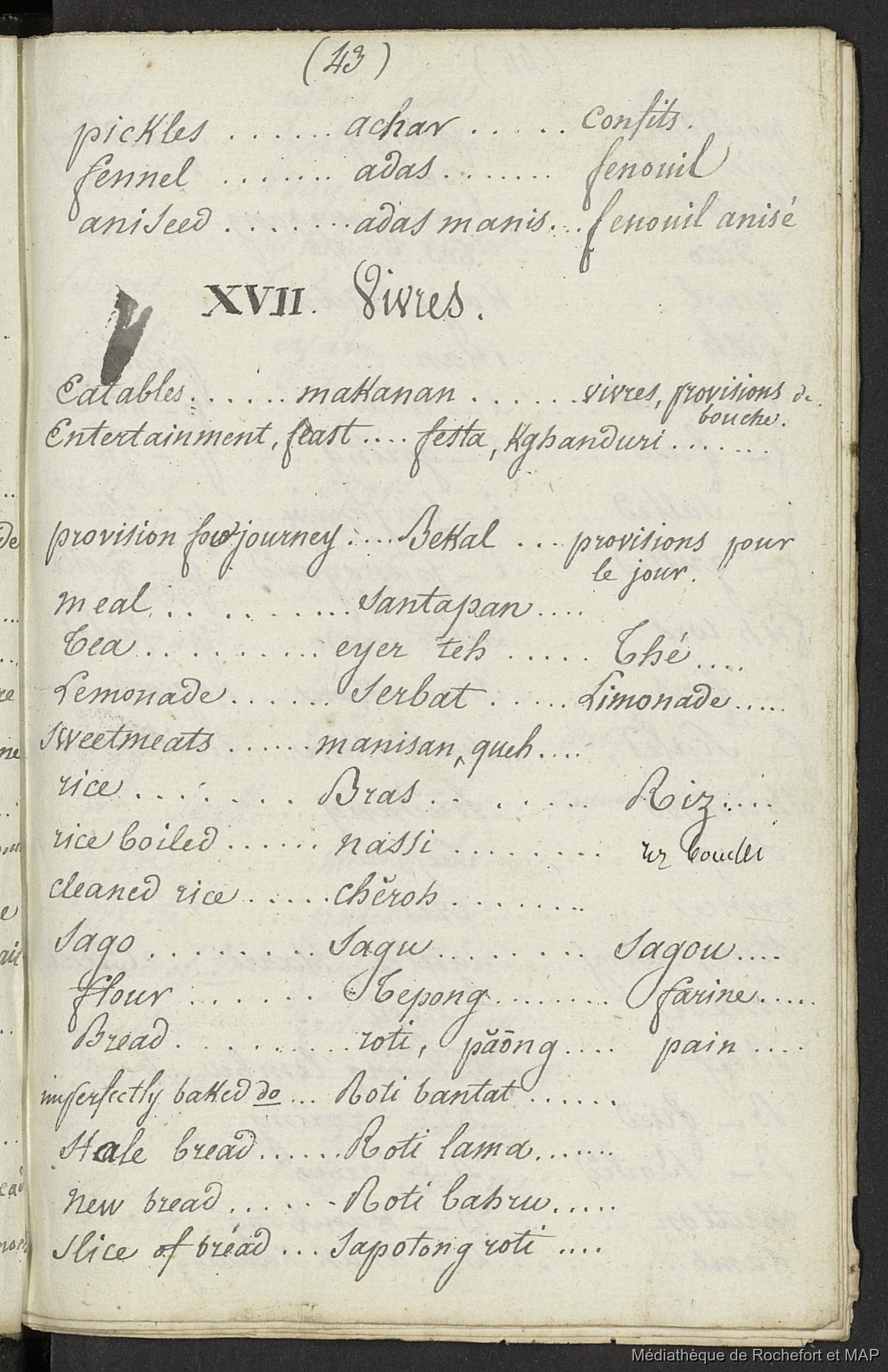 Quote this document Lesson, Pierre-Adolphe [accessed: 2026/1/15]. "Vocabulaire anglais, malais et français (B172996201_BM08191)" (Object Id: 157924). In Vocabulaire anglais, malais et français (B172996201_BM08191). ODSAS: https://www.odsas.net/object/157924.