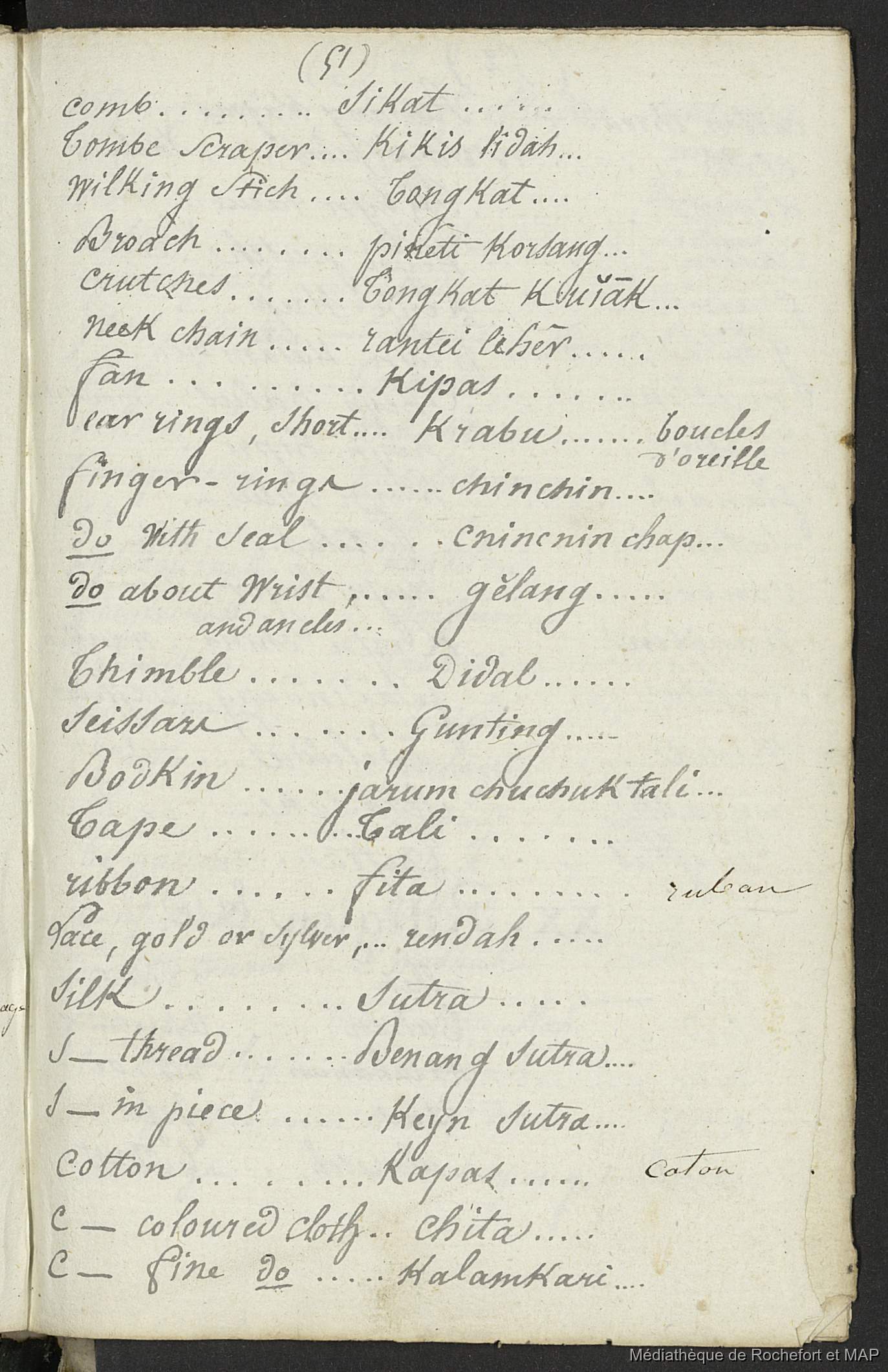 Quote this document Lesson, Pierre-Adolphe [accessed: 2026/1/15]. "Vocabulaire anglais, malais et français (B172996201_BM08191)" (Object Id: 157932). In Vocabulaire anglais, malais et français (B172996201_BM08191). ODSAS: https://www.odsas.net/object/157932.