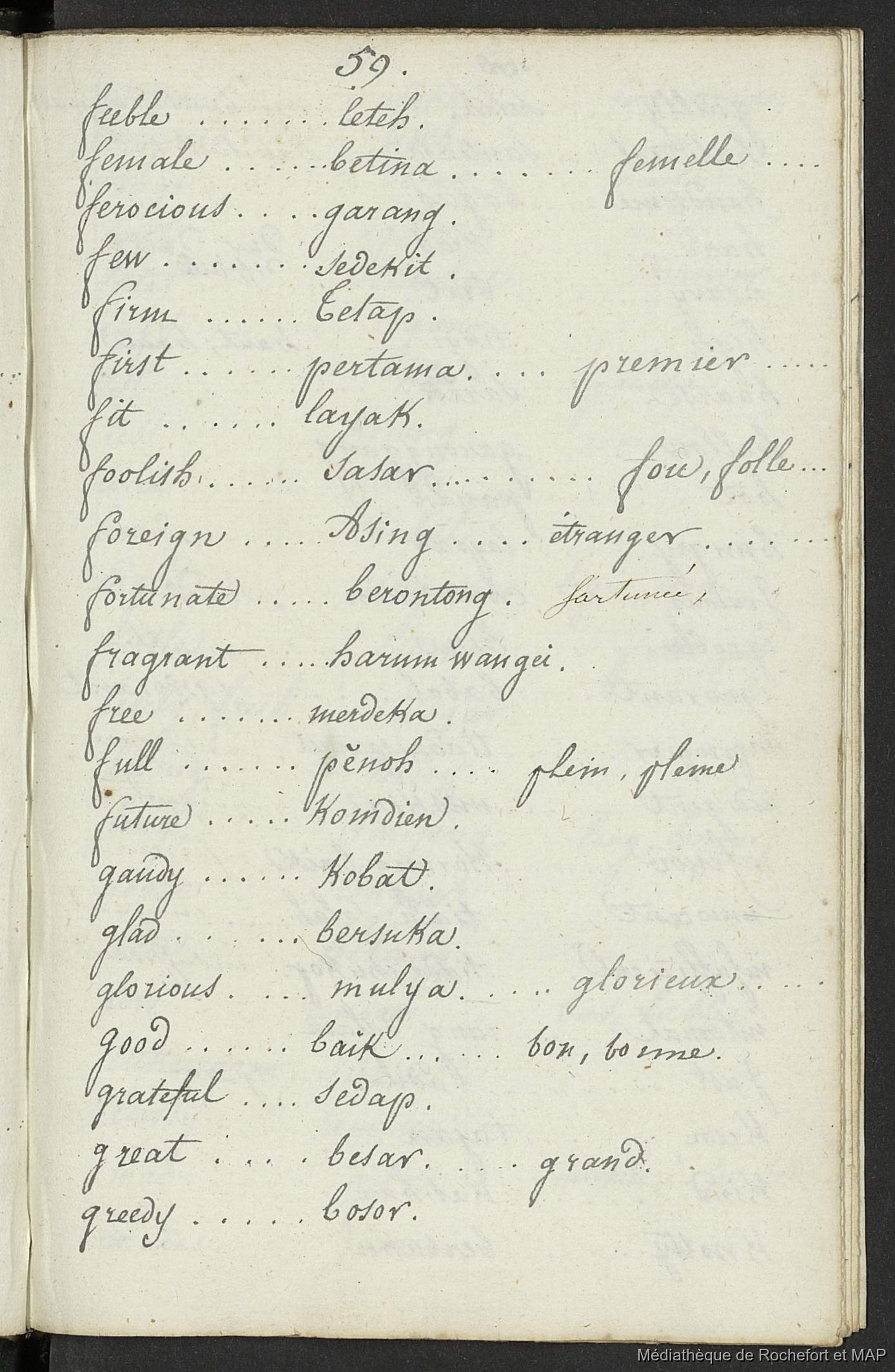 Quote this document Lesson, Pierre-Adolphe [accessed: 2026/1/15]. "Vocabulaire anglais, malais et français (B172996201_BM08191)" (Object Id: 157940). In Vocabulaire anglais, malais et français (B172996201_BM08191). ODSAS: https://www.odsas.net/object/157940.