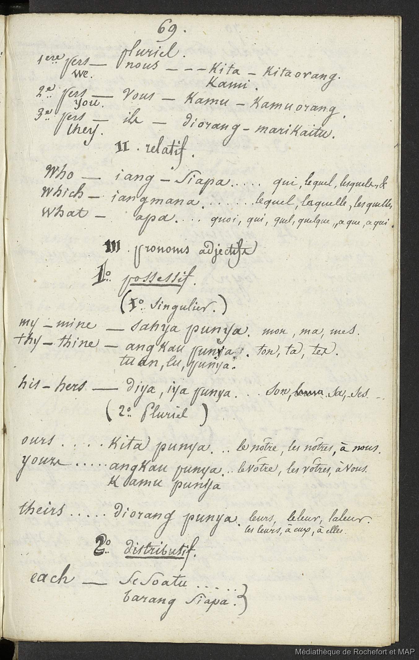 Quote this document Lesson, Pierre-Adolphe [accessed: 2026/1/15]. "Vocabulaire anglais, malais et français (B172996201_BM08191)" (Object Id: 157950). In Vocabulaire anglais, malais et français (B172996201_BM08191). ODSAS: https://www.odsas.net/object/157950.