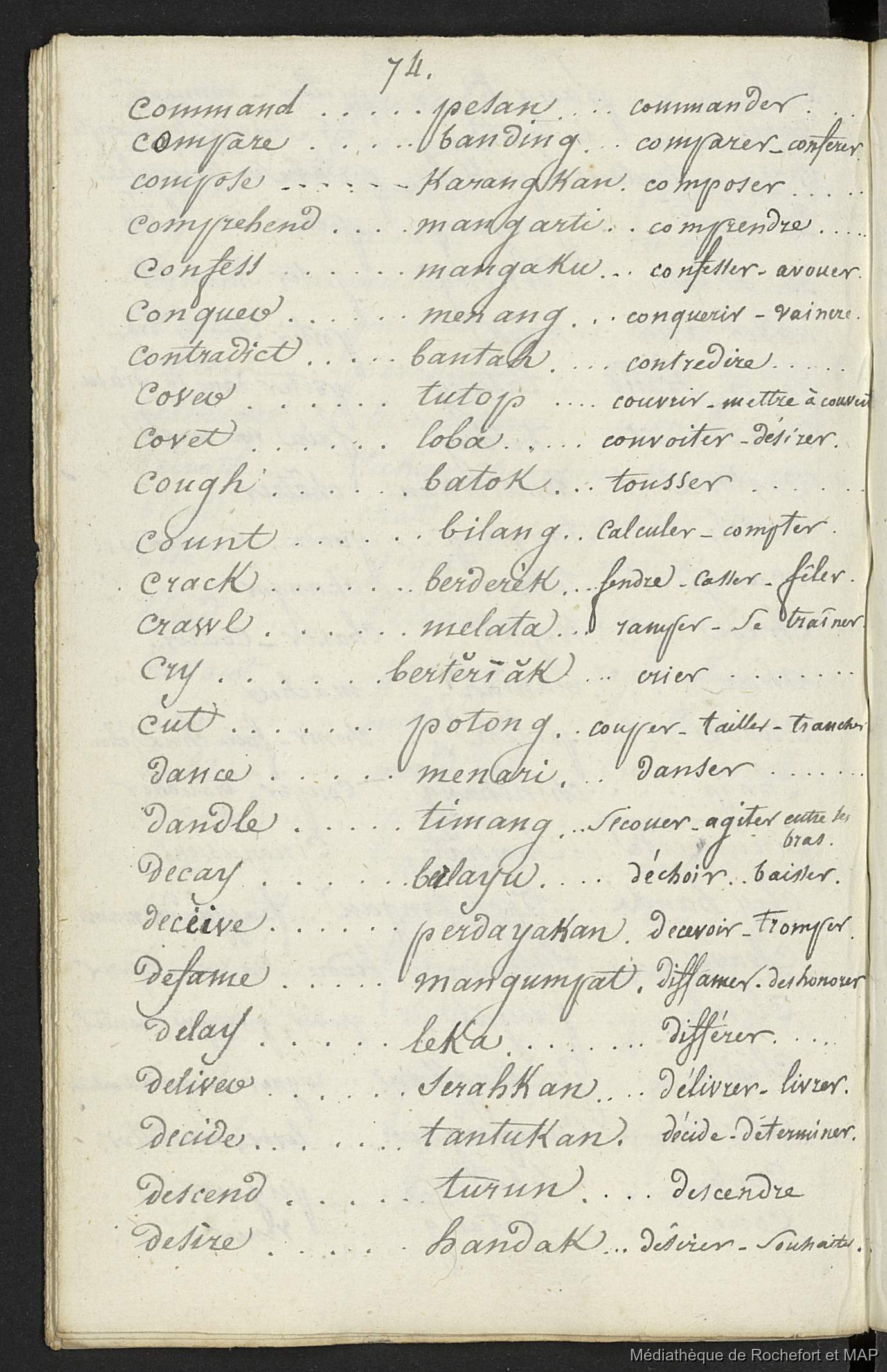Quote this document Lesson, Pierre-Adolphe [accessed: 2026/1/15]. "Vocabulaire anglais, malais et français (B172996201_BM08191)" (Object Id: 157955). In Vocabulaire anglais, malais et français (B172996201_BM08191). ODSAS: https://www.odsas.net/object/157955.
