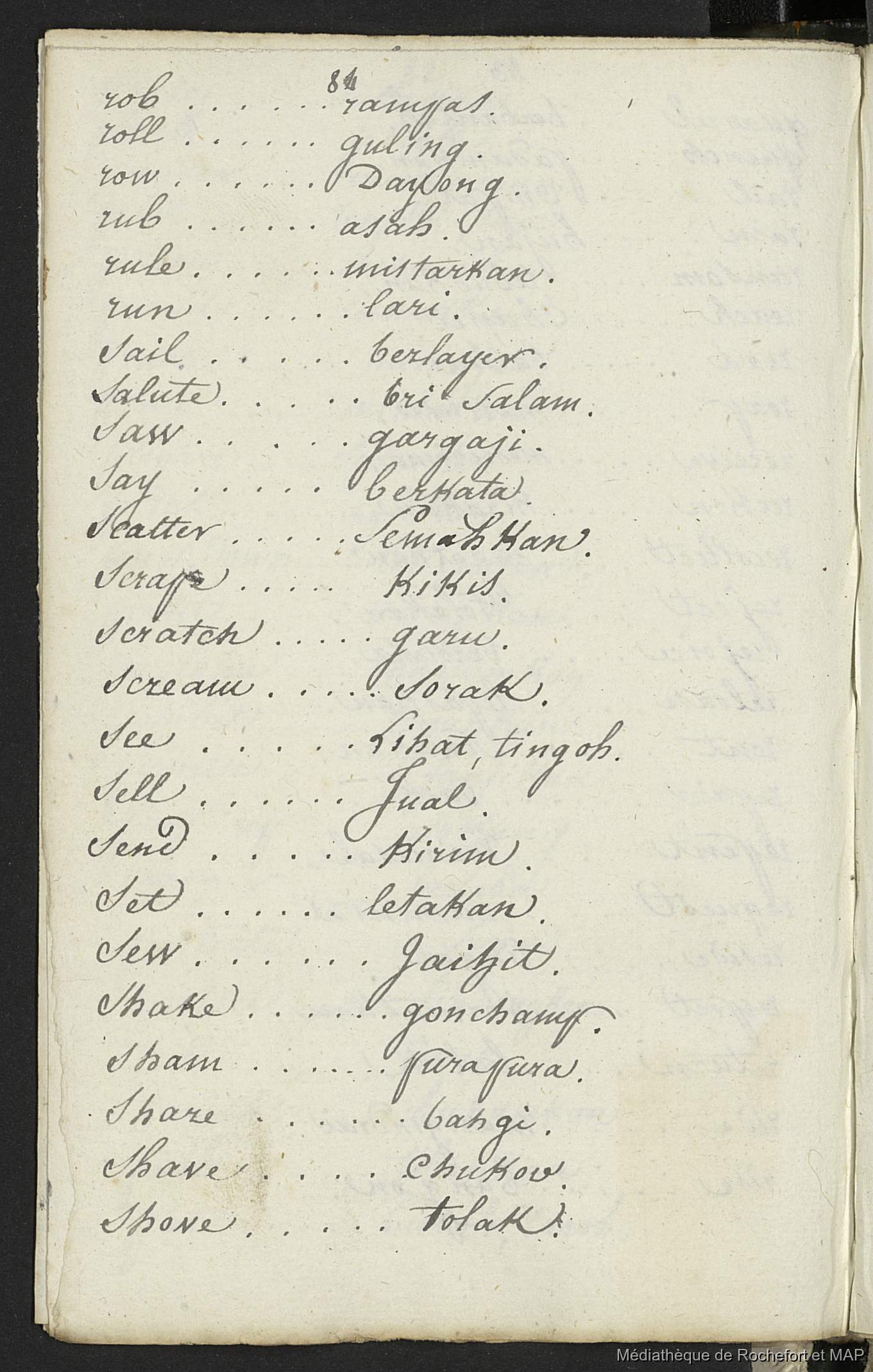 Quote this document Lesson, Pierre-Adolphe [accessed: 2026/1/15]. "Vocabulaire anglais, malais et français (B172996201_BM08191)" (Object Id: 157965). In Vocabulaire anglais, malais et français (B172996201_BM08191). ODSAS: https://www.odsas.net/object/157965.